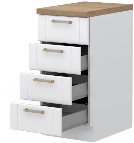 Επιδαπέδιο ντουλάπι Tahoma R-40-4MBOX, η ιδανική λύση για την αποθήκευση μικροαντικειμένων στον χώρο της κουζίνας. Συνδυάστε με τα υπόλοιπα έπιπλα της σειράς κουζίνας Tahoma, για να δημιουργήσετε την ιδανική κουζίνας στα μέτρα σας.
