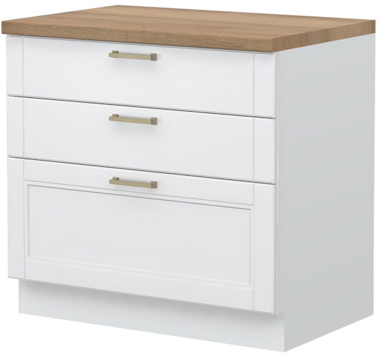Επιδαπέδιο ντουλάπι Tahoma R-90-3F, η ιδανική λύση για την αποθήκευση σκευών μαγειρικής και μικροαντικειμένων στον χώρο της κουζίνας. Συνδυάστε με τα υπόλοιπα έπιπλα της σειράς κουζίνας Tahoma, για να δημιουργήσετε την ιδανική κουζίνας στα μέτρα σας.