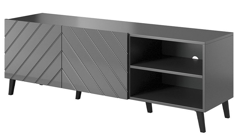 Έπιπλο τηλεόρασης Abeto, μοντέρνου και κομψού σχεδιασμού που θα κάνει το καθιστικό σας να ξεχωρίσει και ταυτόχρονα θα προσθέσει την τέλεια πινελιά στην διακόσμηση του χώρου. Τα πρακτικά του ντουλάπια παρέχουν τον απαραίτητο αποθηκευτικό χώρο για να έχετε όλα τα αντικείμενα οργανωμένα και τακτοποιημένα. Μεγάλο πλεονέκτημα του επίπλου είναι η δυνατότητα επιλογής θέσεις για τις πόρτες ώστε να ικανοποιεί πλήρως τις ανάγκες σας.