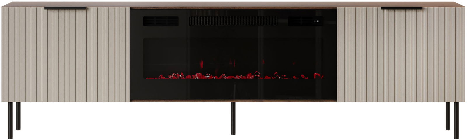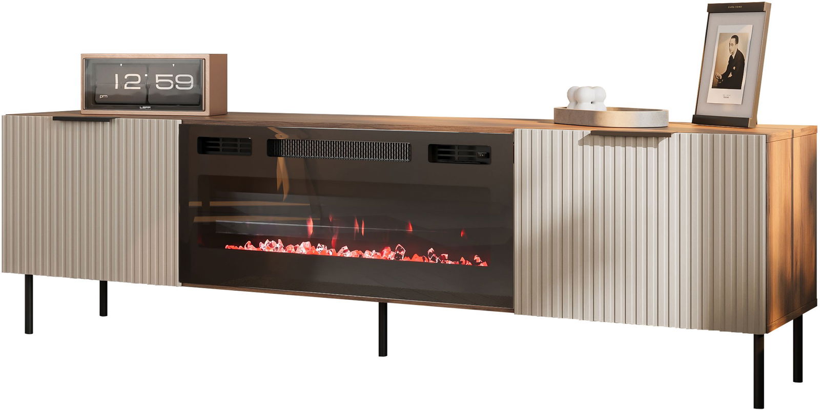 Το έπιπλο τηλεόρασης Almera II είναι ένα κομψό και πρακτικό έπιπλο τηλεόρασης, ιδανικό για να προσθέσει ζεστασιά και στυλ στον χώρο σας. Διαθέτει κλειστά ράφια για αποθήκευση αξεσουάρ και ηλεκτρονικού εξοπλισμού, διακοσμητικά σκαλιστά μπροστινά πάνελ και ψηλά πόδια που προσδίδουν κομψότητα. Τα μαύρα χερούλια ολοκληρώνουν το διακριτικό, μοντέρνο του σχεδιασμό.
