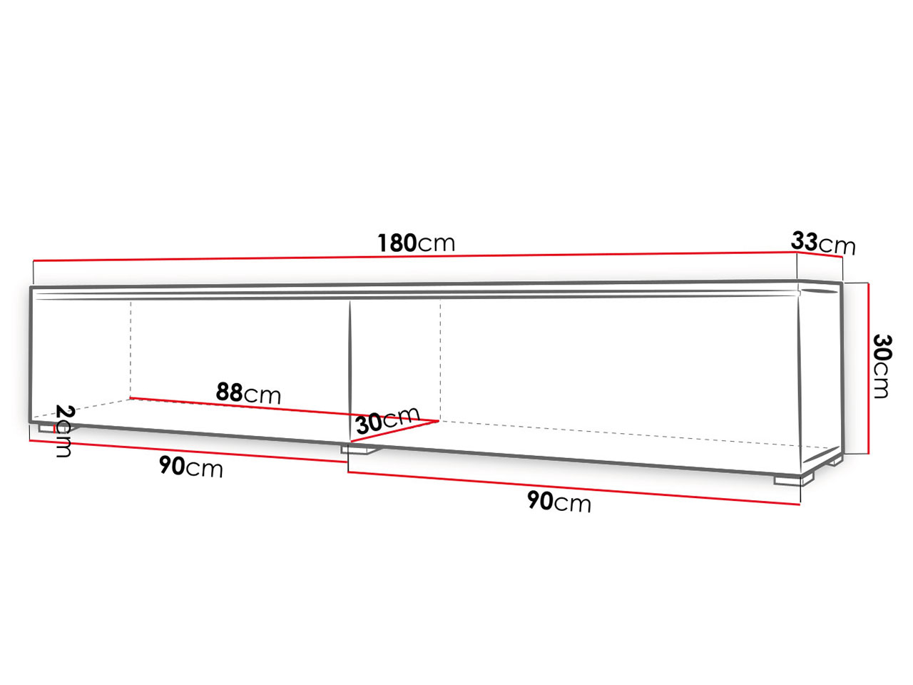 Έπιπλο τηλεόρασης Alone-Leuko-Μήκος: 180 εκ.