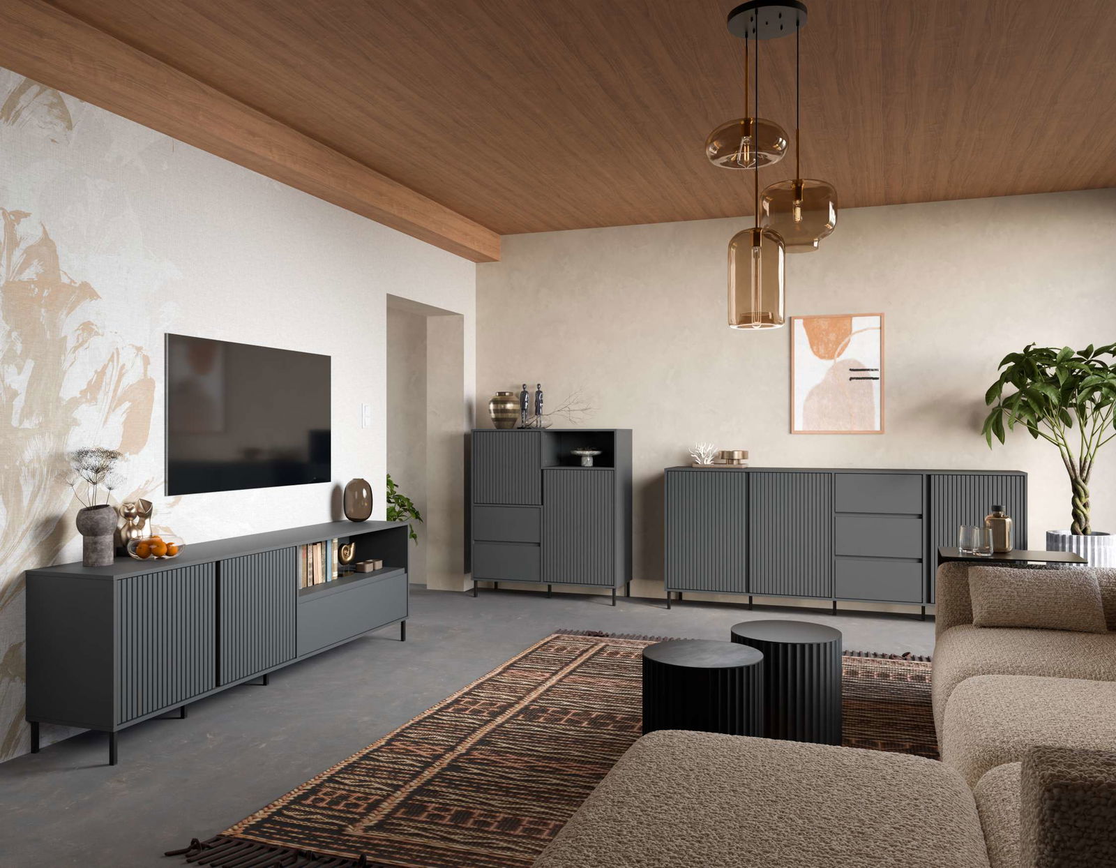 Το κομψό και μοντέρνο έπιπλο τηλεόρασης Anel plus, προσφέρει άφθονο αποθηκευτικό χώρο και μινιμαλιστικό σχεδιασμό για να συμπληρώσει κάθε σαλόνι με αρμονία. Συνδυάστε το προϊόν και με τα υπόλοιπα της σειράς Anel και δημιουργήστε μια ολοκληρωμένη σύνθεση σαλονιού.