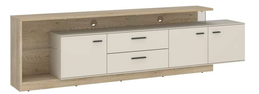 Σύγχρονο έπιπλο τηλεόρασης Angolo Plus με συνδυασμό φυσικής όψης ξύλου και απαλού cashmere. Ιδανικό για οργάνωση και κομψή αισθητική στο σαλόνι σας. Συνδυάστε το, με τα υπόλοιπα έπιπλα της ίδιας σειράς.