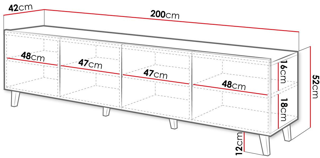Έπιπλο τηλεόρασης Asti μοντέρνου σχεδιασμού με πρακτικούς χώρους για αποθηκευση αντικειμένων.
