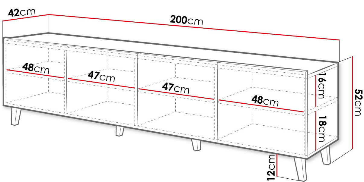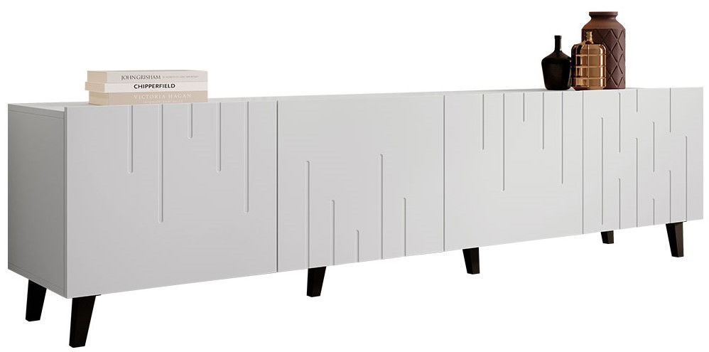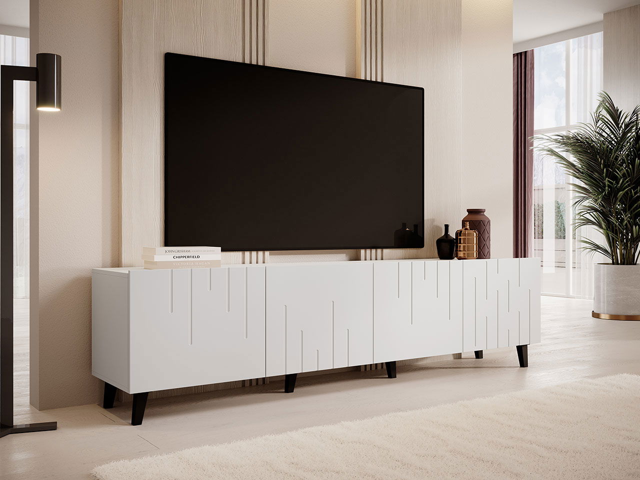 Έπιπλο τηλεόρασης Bari μοντέρνου σχεδιασμού με πρακτικούς χώρους για αποθηκευση αντικειμένων.