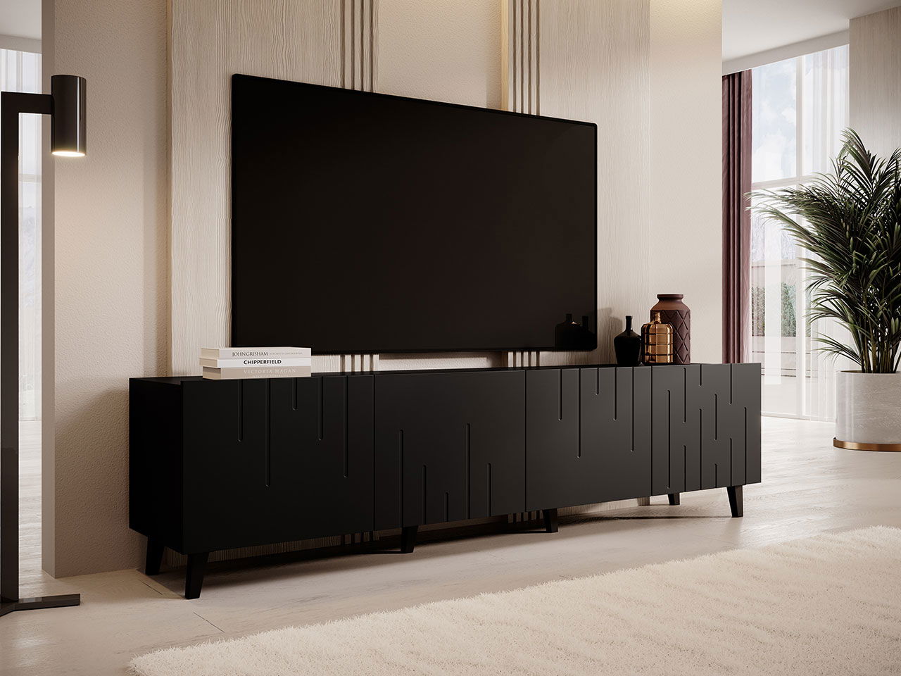 Έπιπλο τηλεόρασης Bari μοντέρνου σχεδιασμού με πρακτικούς χώρους για αποθηκευση αντικειμένων.