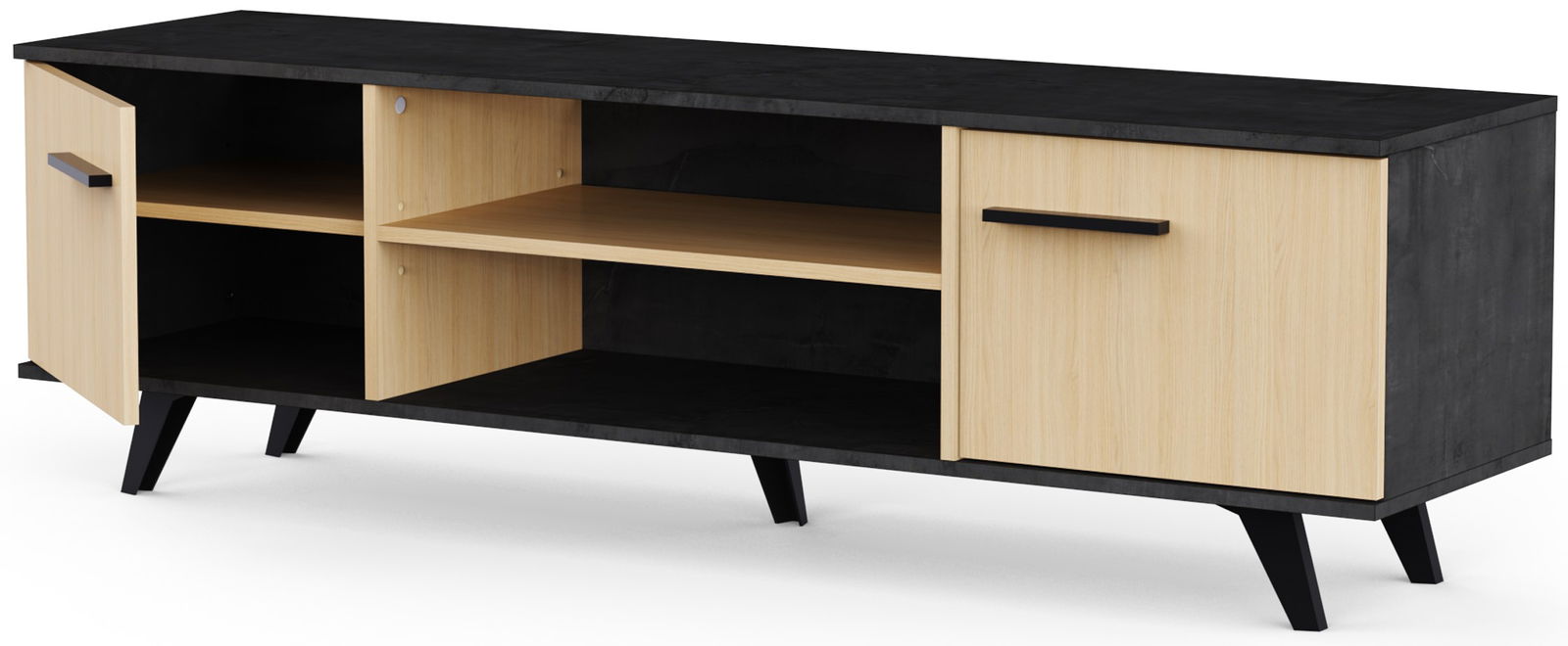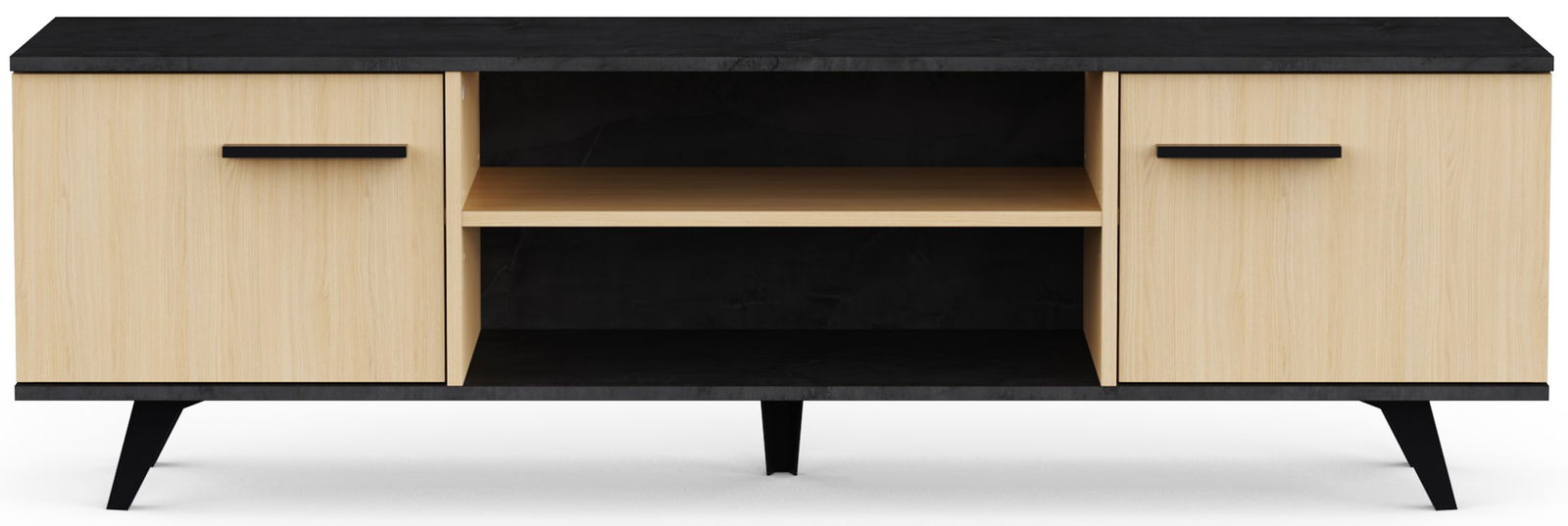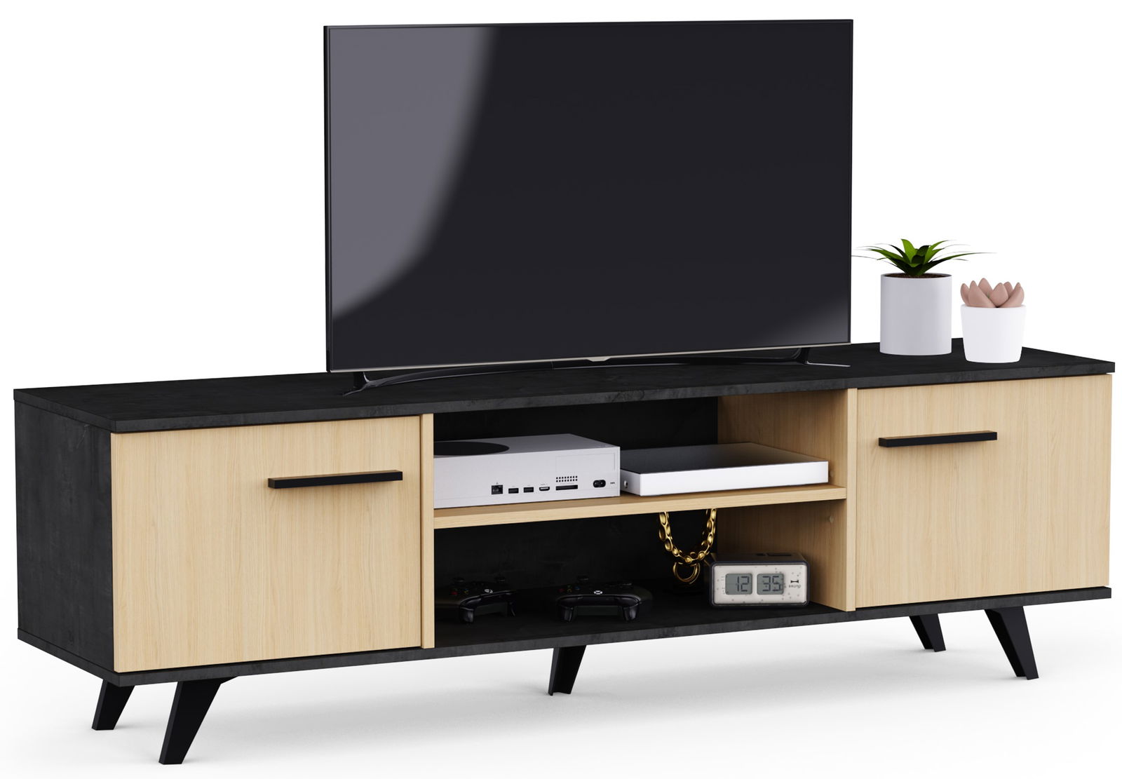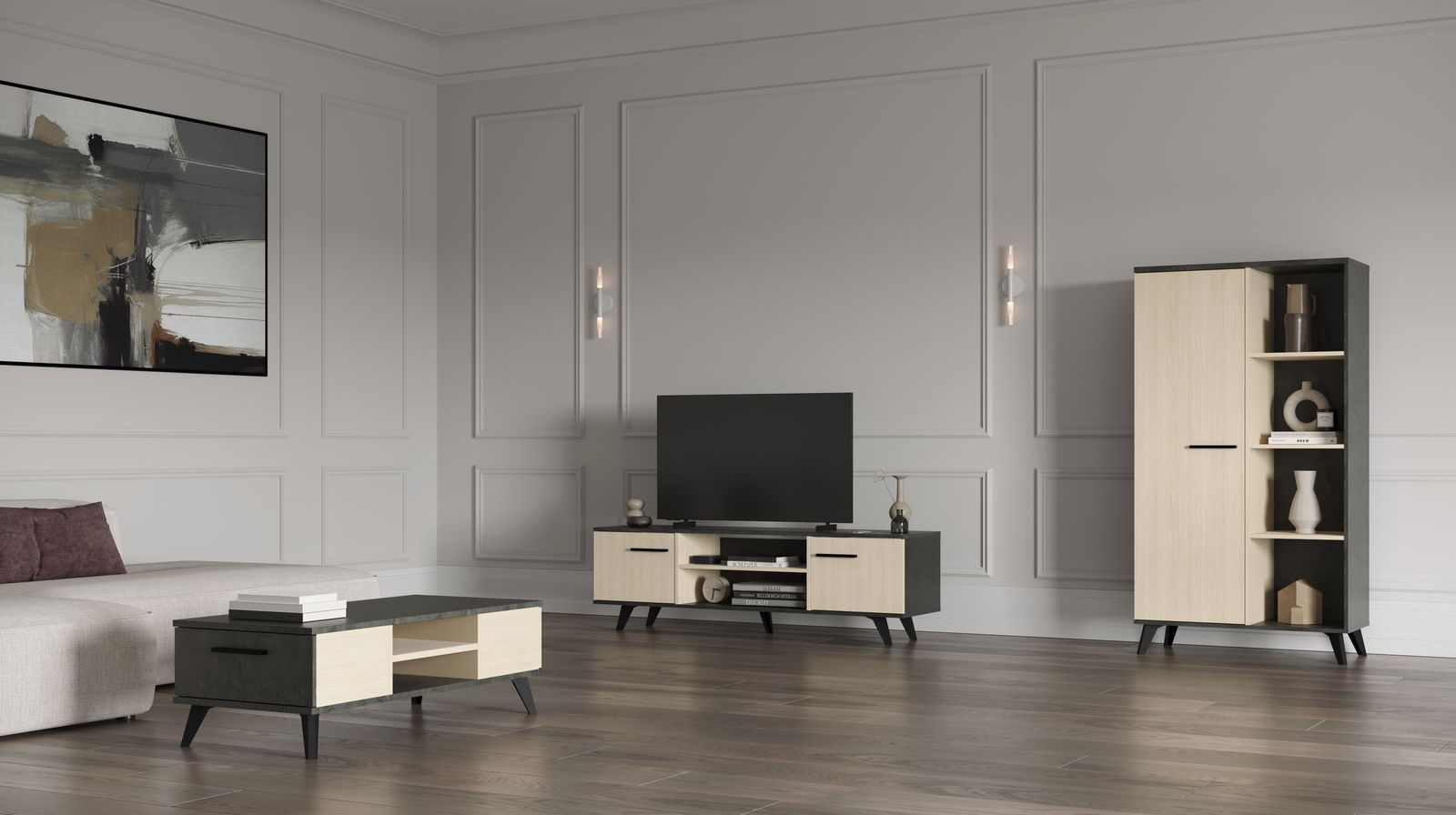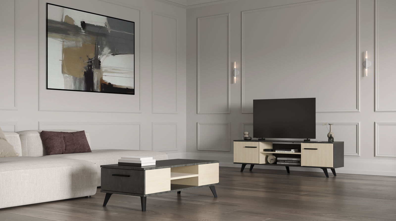 Βελτιώστε το χώρο ψυχαγωγίας σας με το σύγχρονο έπιπλο τηλεόρασης Clark. Με κομψό σχεδιασμό με ανοιχτόχρωμες ξύλινες πόρτες και σκούρο πλαίσιο με υφή, αυτή η βάση προσφέρει τόσο κομψή προβολή όσο και πρακτική αποθήκευση για όλες τις ανάγκες σας σε πολυμέσα.