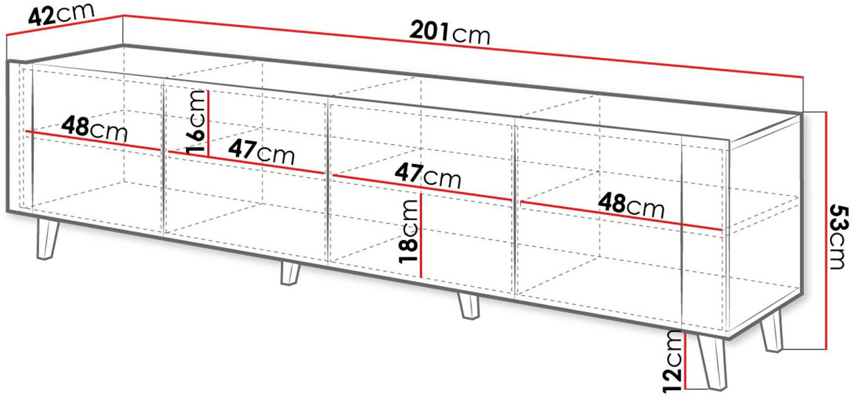 Έπιπλο τηλεόρασης Faro, μοντέρνου σχεδιασμού για να ταιριάξει κατάλληλα με τα υπόλοιπα έπιπλα του σπιτιού και με πρακτικούς χώρους για αποθήκευση αντικειμένων. Συνδυάστε το με τον μπουφέ της σειράς Faro.