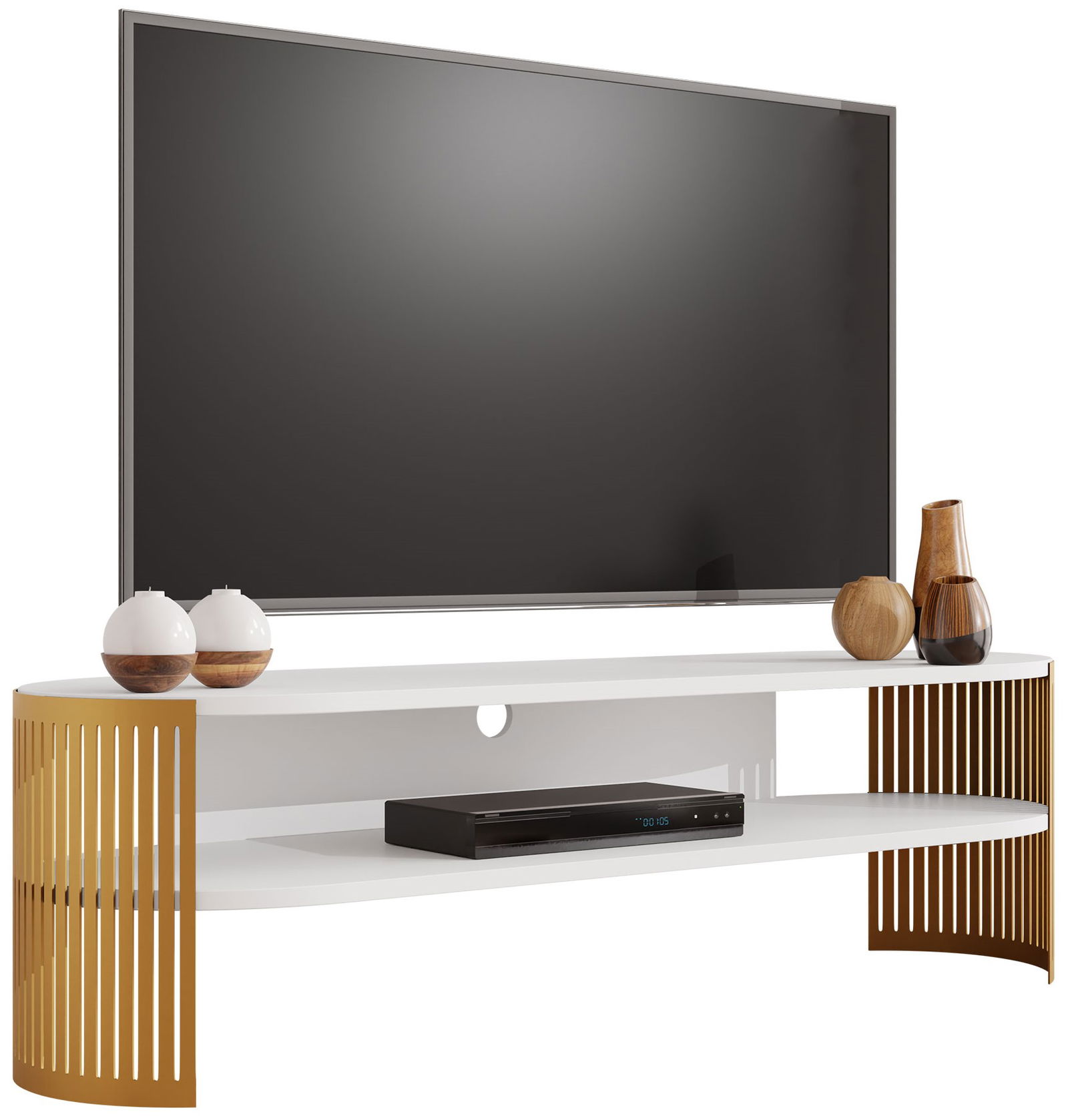 Το λαμπερό έπιπλο τηλεόρασης Fikoli GD είναι ένα statement κομμάτι για κάθε μοντέρνο σαλόνι. Ο μοναδικός σχεδιασμός με τα κάθετα χρυσά πηχάκια προσθέτει μια πινελιά οπτικού ενδιαφέροντος.