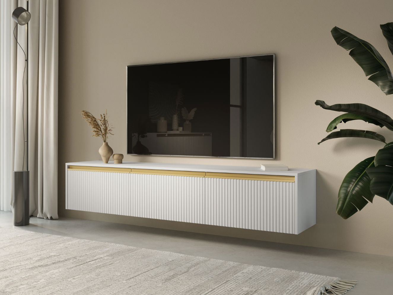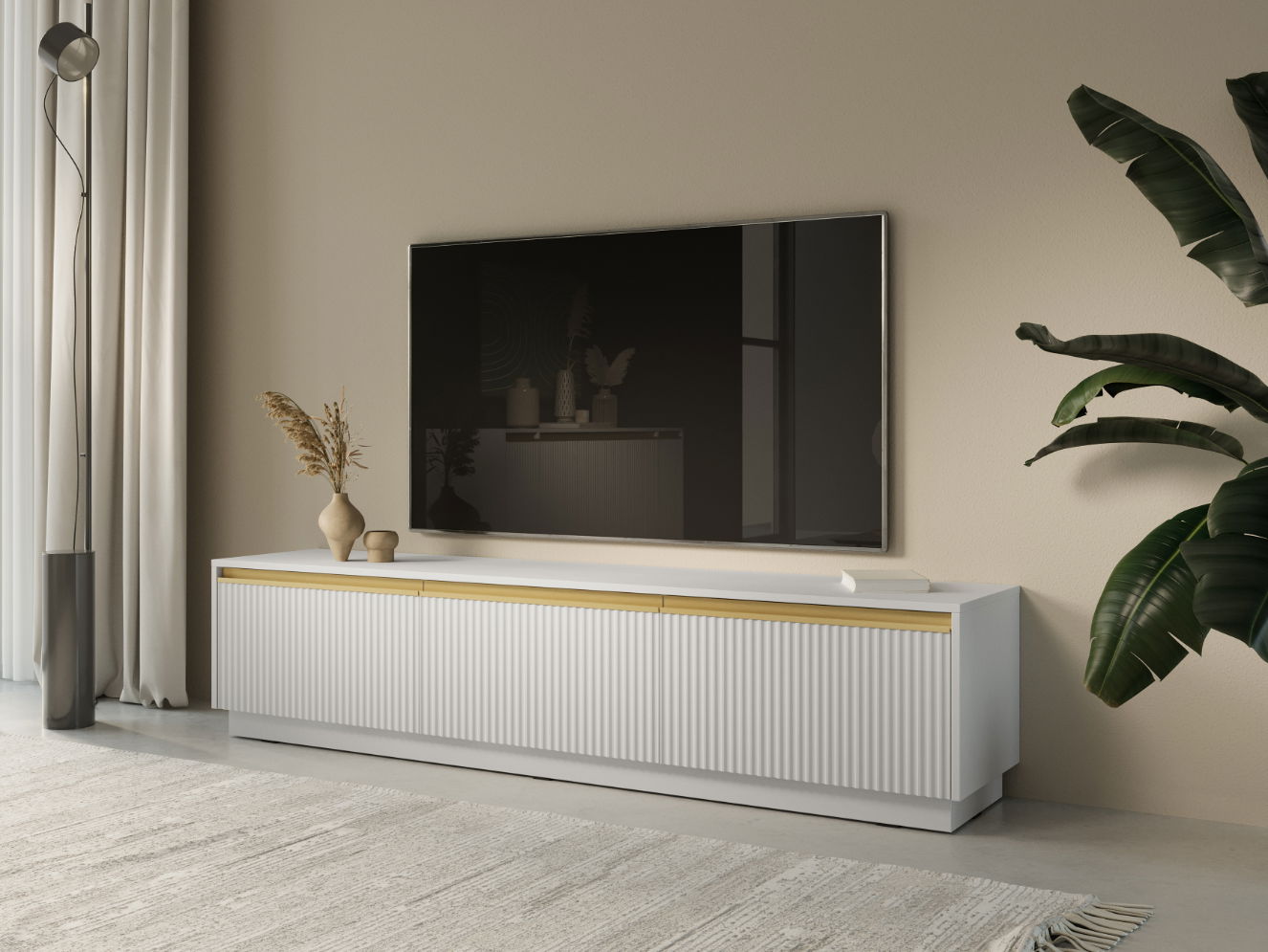 Το έπιπλο τηλεόρασης Imperial αναβαθμίζει το σαλόνι σας με ιδαίτερα έξυπνο και ευέλικτο design. Αυτό το κομψό και μοντέρνο κομμάτι διαθέτει εντυπωσιακό φινίρισμα με χρυσές πινελιές στις χωνευτές λαβές, δημιουργώντας μια πολυτελή και εκλεπτυσμένη εμφάνιση. Οι ανάγλυφες πόρτες προσθέτουν μια πινελιά υφής και οπτικού ενδιαφέροντος, ενώ ο άφθονος αποθηκευτικός χώρος παρέχει μια πρακτική λύση για τον εξοπλισμό ψυχαγωγίας και για τα αξεσουάρ σας. Συνδιάστε το προϊόν και με τα υπόλοιπα της σειράς Imperial.