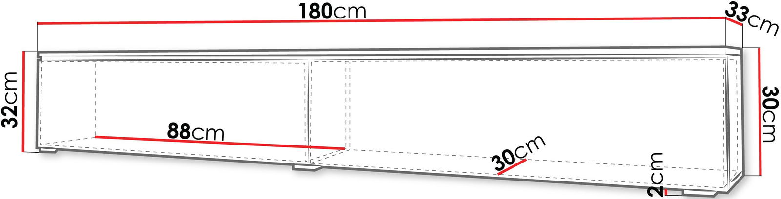 Έπιπλο τηλεόρασης Lowboard D 180-Γκρι Ματ