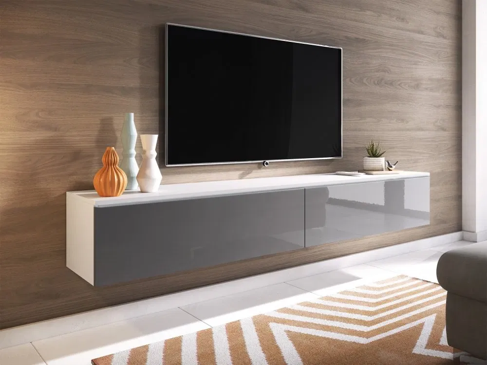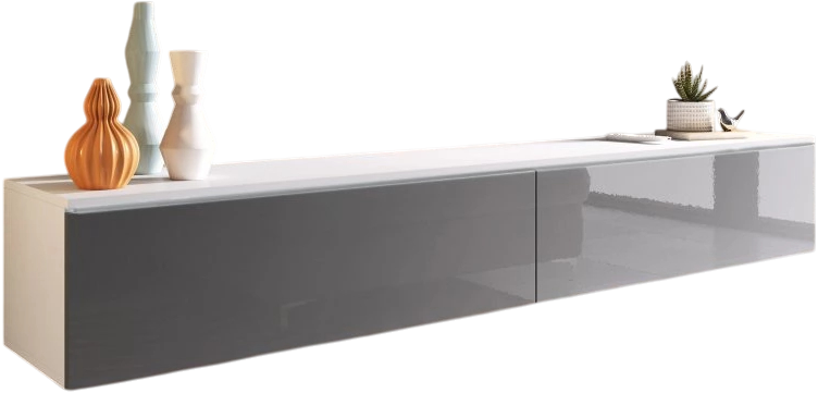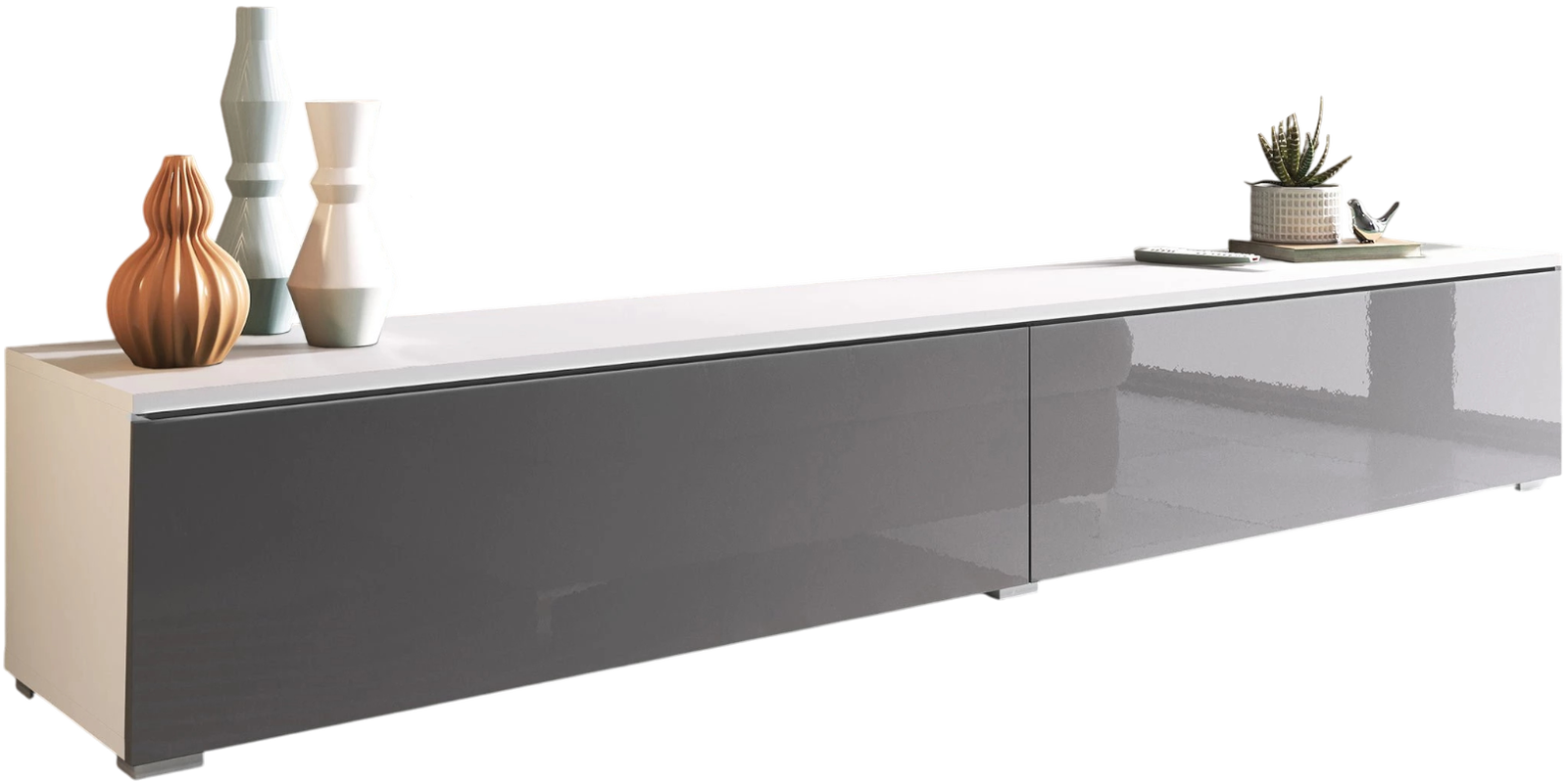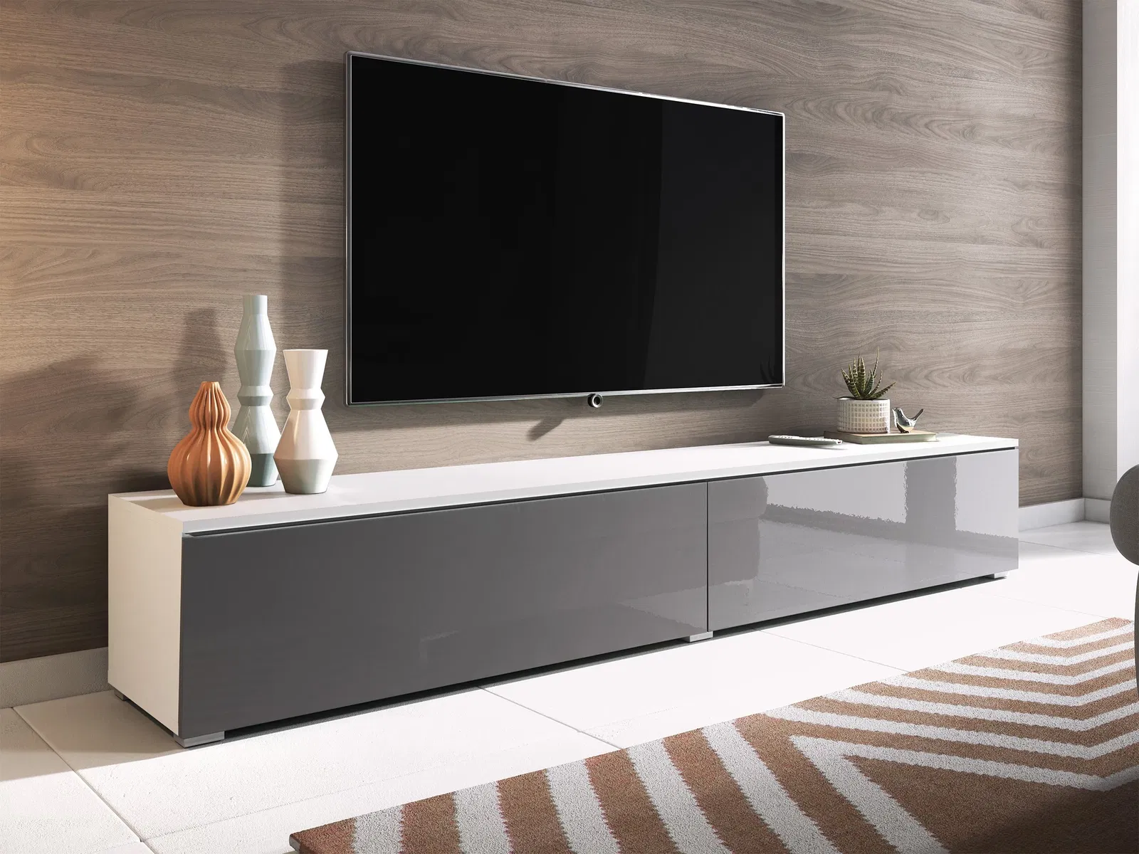 Έπιπλο τηλεόρασης Lowboard D 180-Λευκό-Γκρι Γυαλιστερό