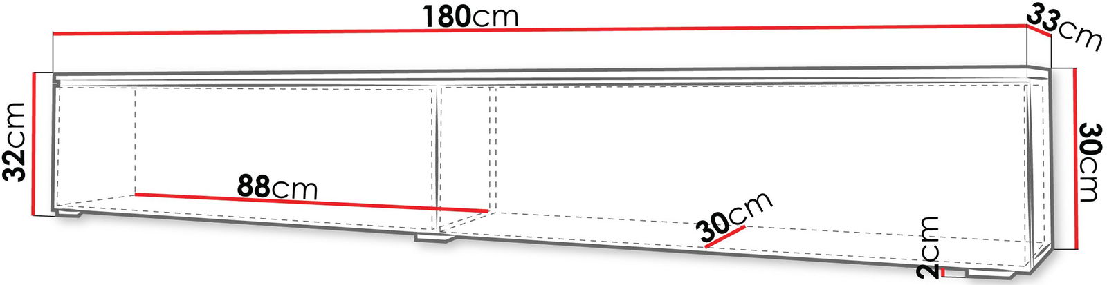Βάση τηλεόρασης Lowboard D 180, μοντέρνου και πρακτικού σχεδιασμού, με 2 κλειστά ντουλάπια, που θα προσδώσει κομψότητα και θα προσφέρει επιπλέον αποθηκευτικές λύσεις στον χώρο.