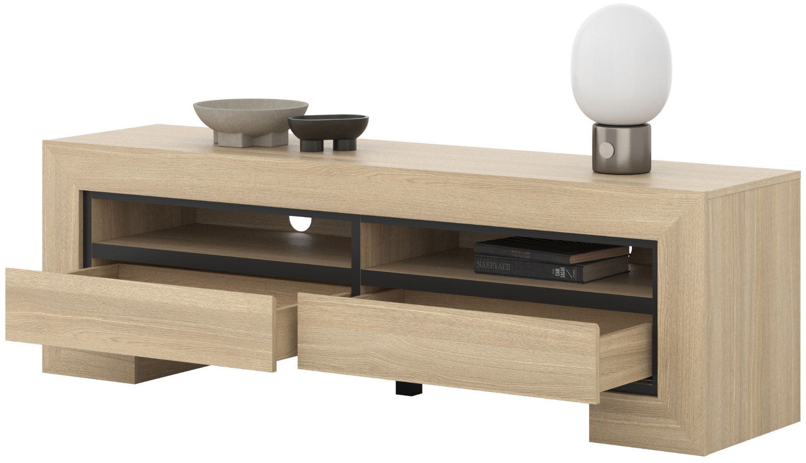 Δημιουργήστε ένα κομψό και οργανωμένο κέντρο ψυχαγωγίας στο σπίτι σας με το έπιπλο τηλεόρασης Lyra. Σχεδιασμένο με καθαρές γραμμές, ένα ζεστό φινίρισμα σε απόχρωση ξύλου και εντυπωσιακές μαύρες πινελιές, αυτό το κομμάτι προσφέρει τον τέλειο συνδυασμό ανοιχτών ραφιών για τις συσκευές σας και διακριτικών συρταριών για μια ζωή χωρίς ακαταστασία, ιδανική για να απολαμβάνετε τις αγαπημένες σας ταινίες και σειρές στο σαλόνι σας. Συνδυάστε το προϊόν και με τα υπόλοιπα της σειράς Lyra.
