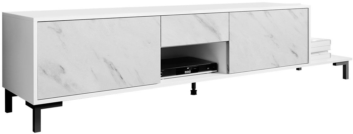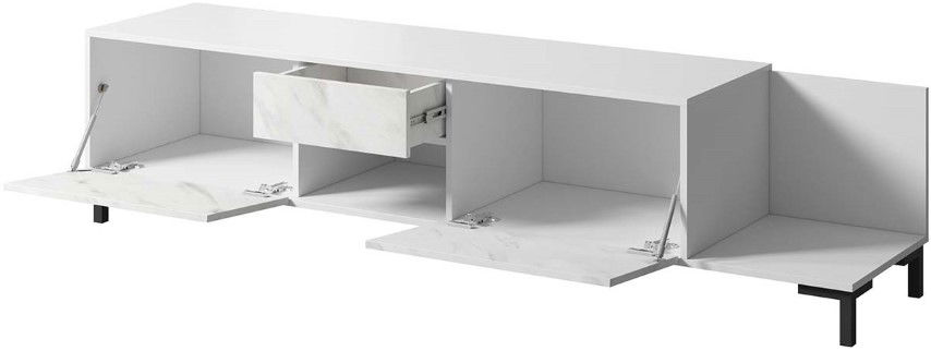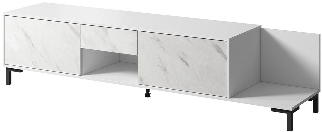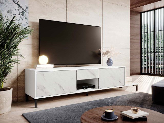 Έπιπλο τηλεόρασης Marmo, μοντέρνου σχεδιασμού. Πρακτικό, με ντουλάπια και ράφια για να αποθηκεύετε ό,τι χρειαστείτε και σε μοναδικό μαρμάρινο χρωματισμό, είναι σίγουρο πως θα ανανεώσει την αισθητική του σαλονιού σας.