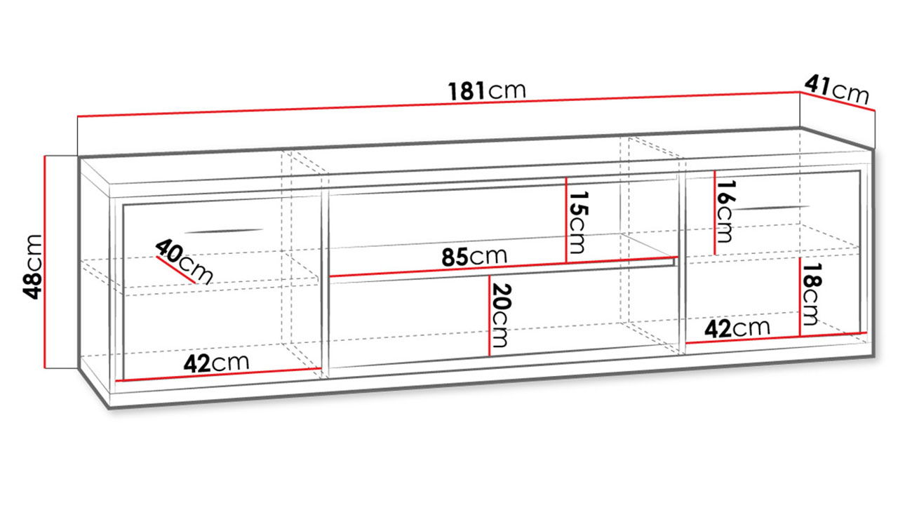 Έπιπλο τηλεόρασης Mediolan-Fusiko Special-Μήκος: 181 εκ.-Χωρίς ποδαρικό