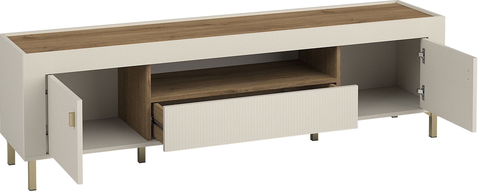 Η Mossa είναι ένα κομψό και λειτουργικό έπιπλο τηλεόρασης που συνδυάζει την αισθητική με την πρακτικότητα. Με τον ευρύχωρο πάγκο της, προσφέρει τον ιδανικό χώρο για την τοποθέτηση της τηλεόρασής σας και των συνοδευτικών συσκευών. Οι κρυφοί αποθηκευτικοί χώροι σας επιτρέπουν να κρατάτε τα καλώδια και τα διάφορα αντικείμενα οργανωμένα. Ο σύγχρονος σχεδιασμός της και τα ποιοτικά υλικά κατασκευής την καθιστούν ένα διαχρονικό κομμάτι που θα αναβαθμίσει την αισθητική του σαλονιού σας.