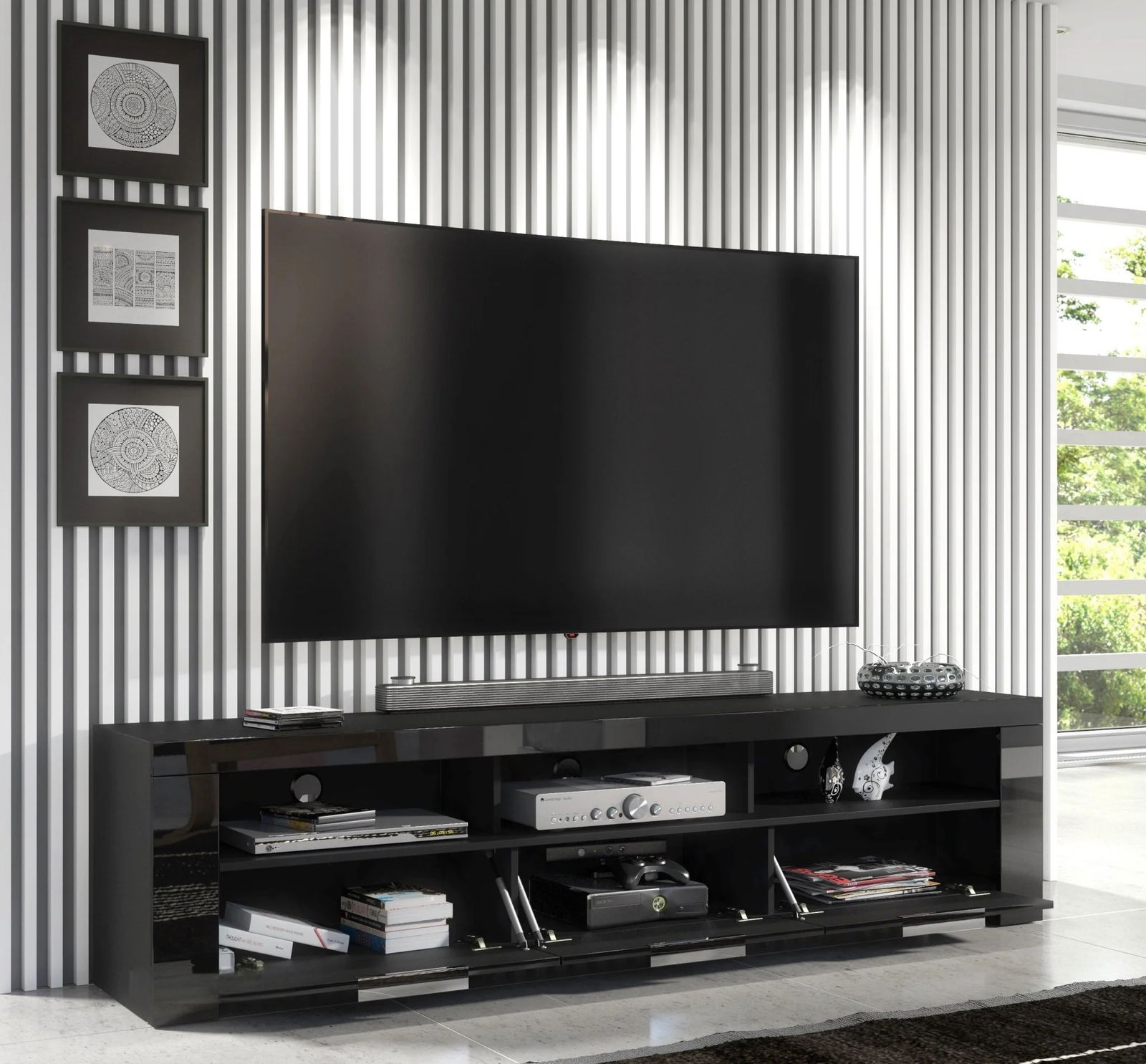 Αναβαθμίστε το σαλόνι σας με το κομψό και σύγχρονο έπιπλο τηλεόρασης Opera. Συνδυάζει άψογα το μοντέρνο σχεδιασμό με την πρακτική λειτουργικότητα, παρέχοντας άφθονο χώρο για την τηλεόραση, τις συσκευές πολυμέσων και τη διακόσμησή σας.