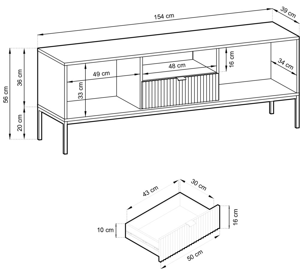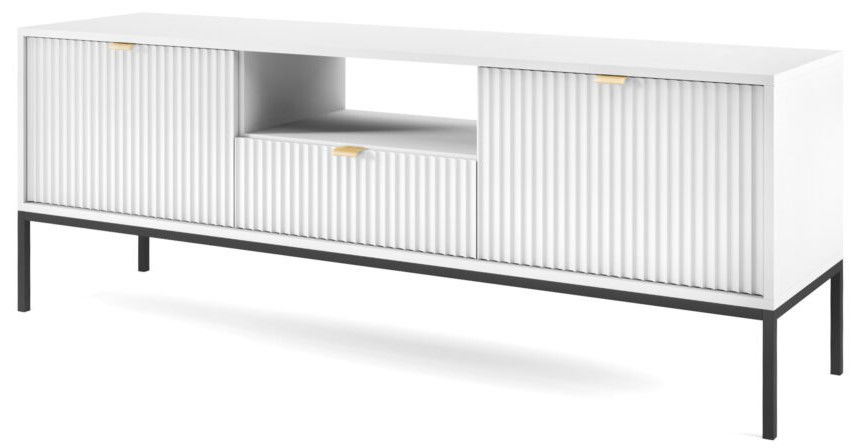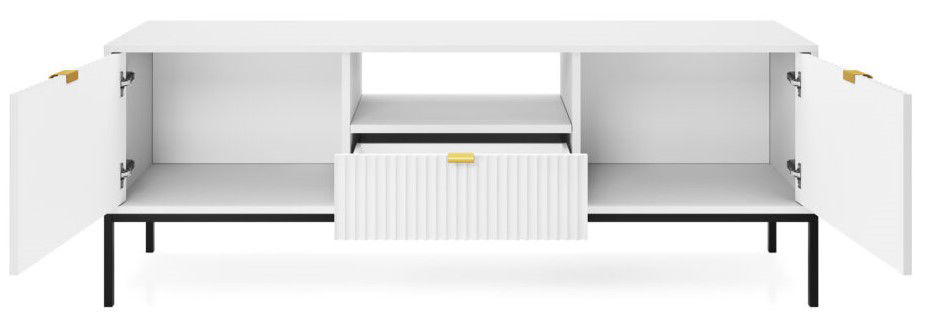 Έπιπλο τηλεόρασης Palermo, μοντέρνου σχεδιασμού, με 1 συρτάρι και 2 ντουλάπια για αποθήκευση αντικειμένων και καλύτερη οργάνωση του χώρου σας αλλά και ανοιχτό αποθηκευτικό χώρο με διαστάσεις ιδανικές για τοποθέτηση κονσόλας.