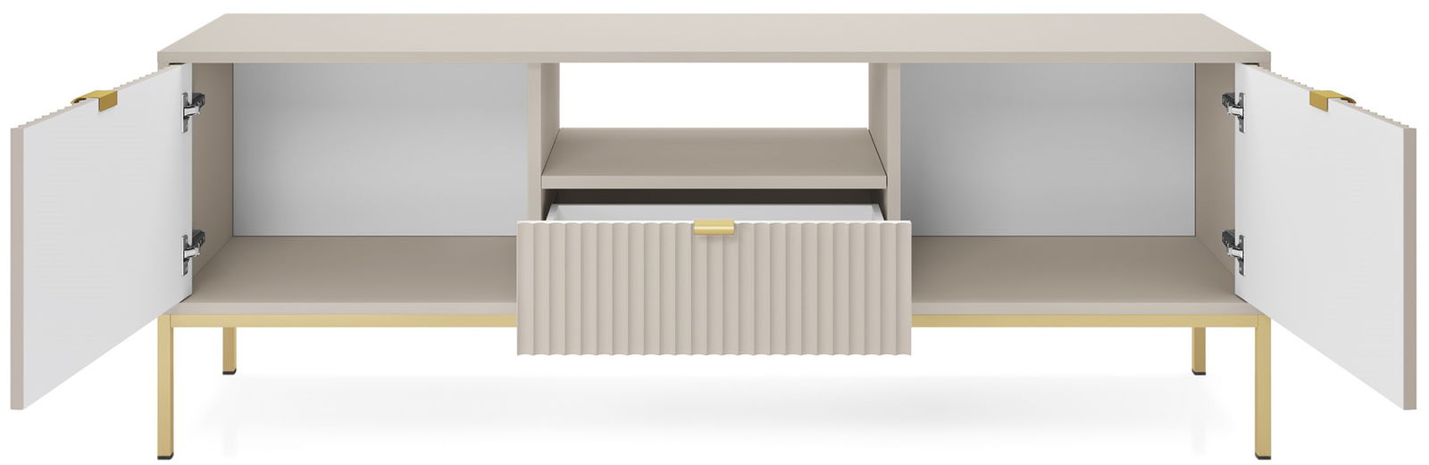 Έπιπλο τηλεόρασης Palermo, μοντέρνου σχεδιασμού, με 1 συρτάρι και 2 ντουλάπια για αποθήκευση αντικειμένων και καλύτερη οργάνωση του χώρου σας αλλά και ανοιχτό αποθηκευτικό χώρο με διαστάσεις ιδανικές για τοποθέτηση κονσόλας.