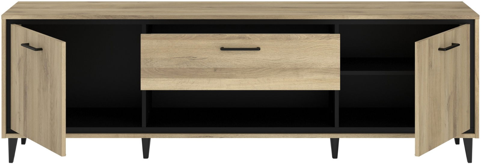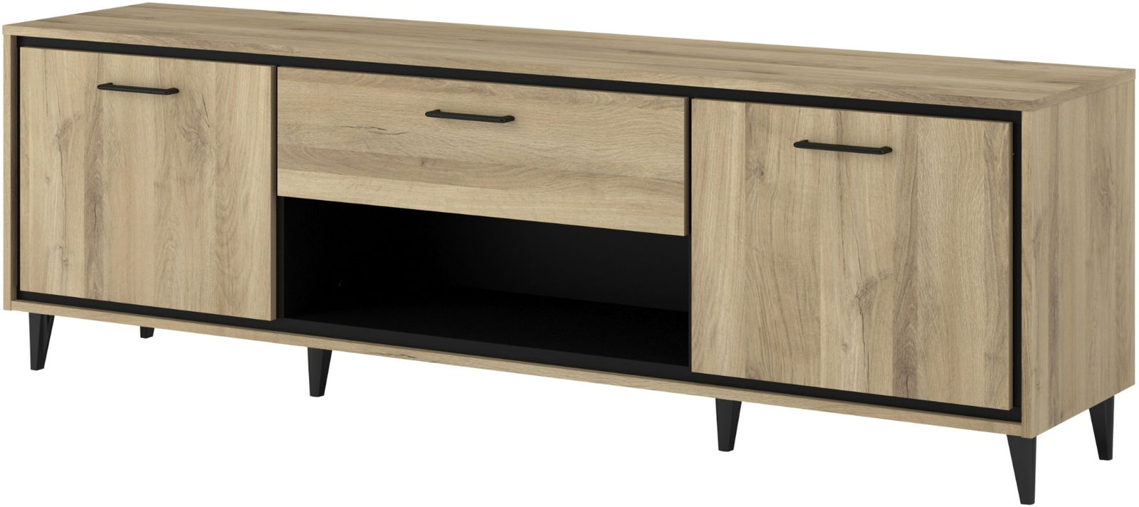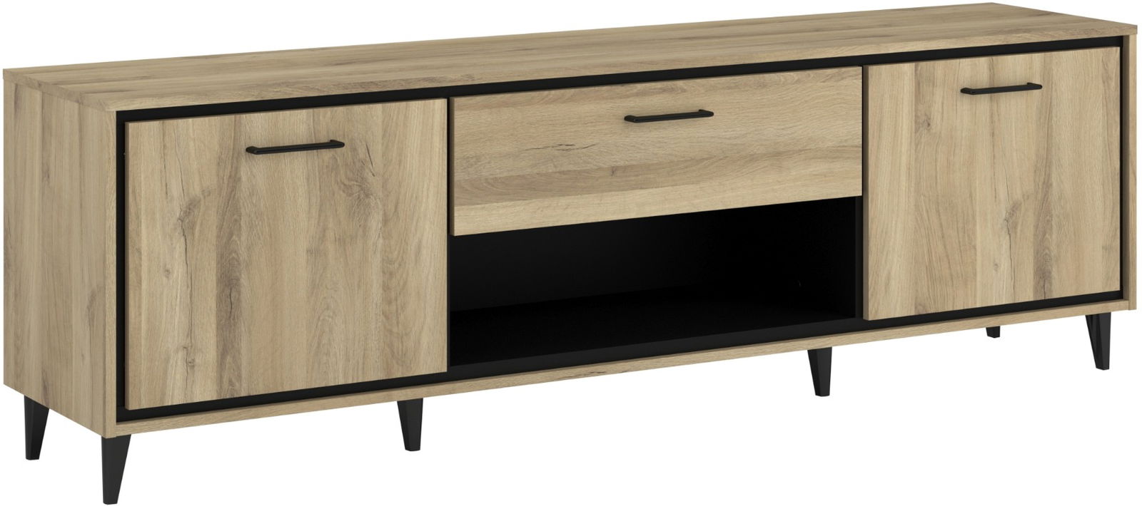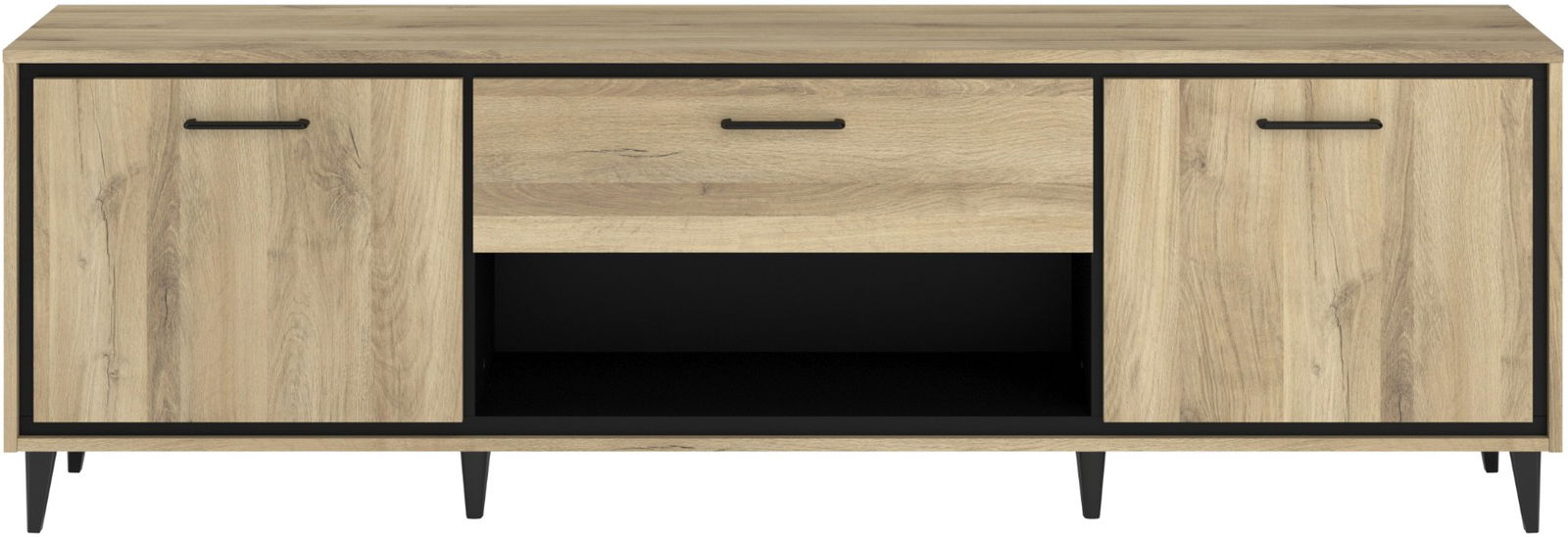 Το έπιπλο τηλεόρασης Rasty συνδυάζει φυσική ξύλινη όψη με κομψές μαύρες λεπτομέρειες, ιδανικό για κάθε σύγχρονο σαλόνι. Το minimal design του απογειώνει την αισθητική του χώρου σας.