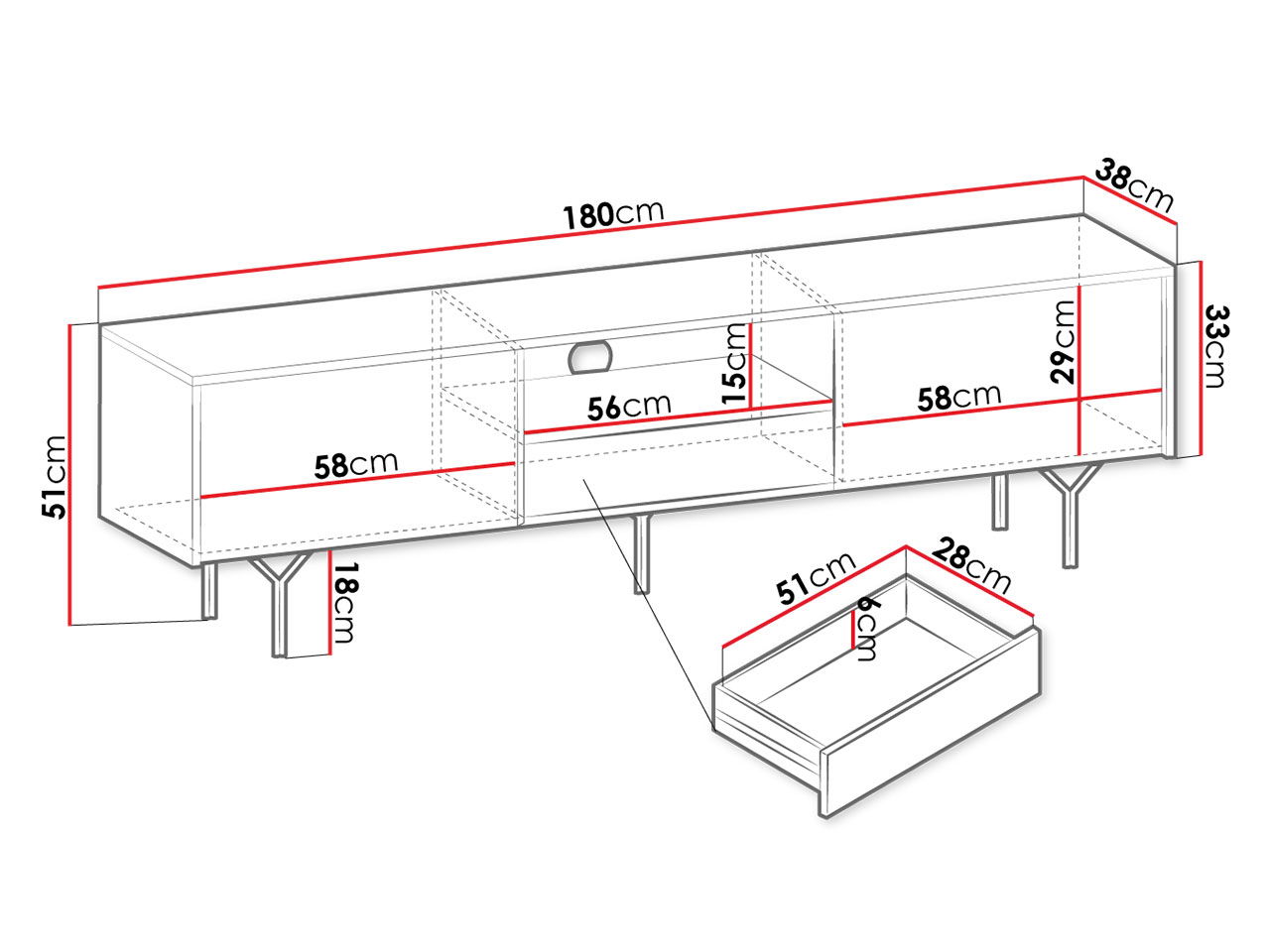 Έπιπλο τηλεόρασης Raven, με μοντέρνο design. Ιδανική επιλογή για να διακοσμήσετε το χώρο του σαλονιού σας. Είναι σχεδιασμένο με προσοχή, ώστε να δώσει μια νέα πνοή στον χώρο σας.