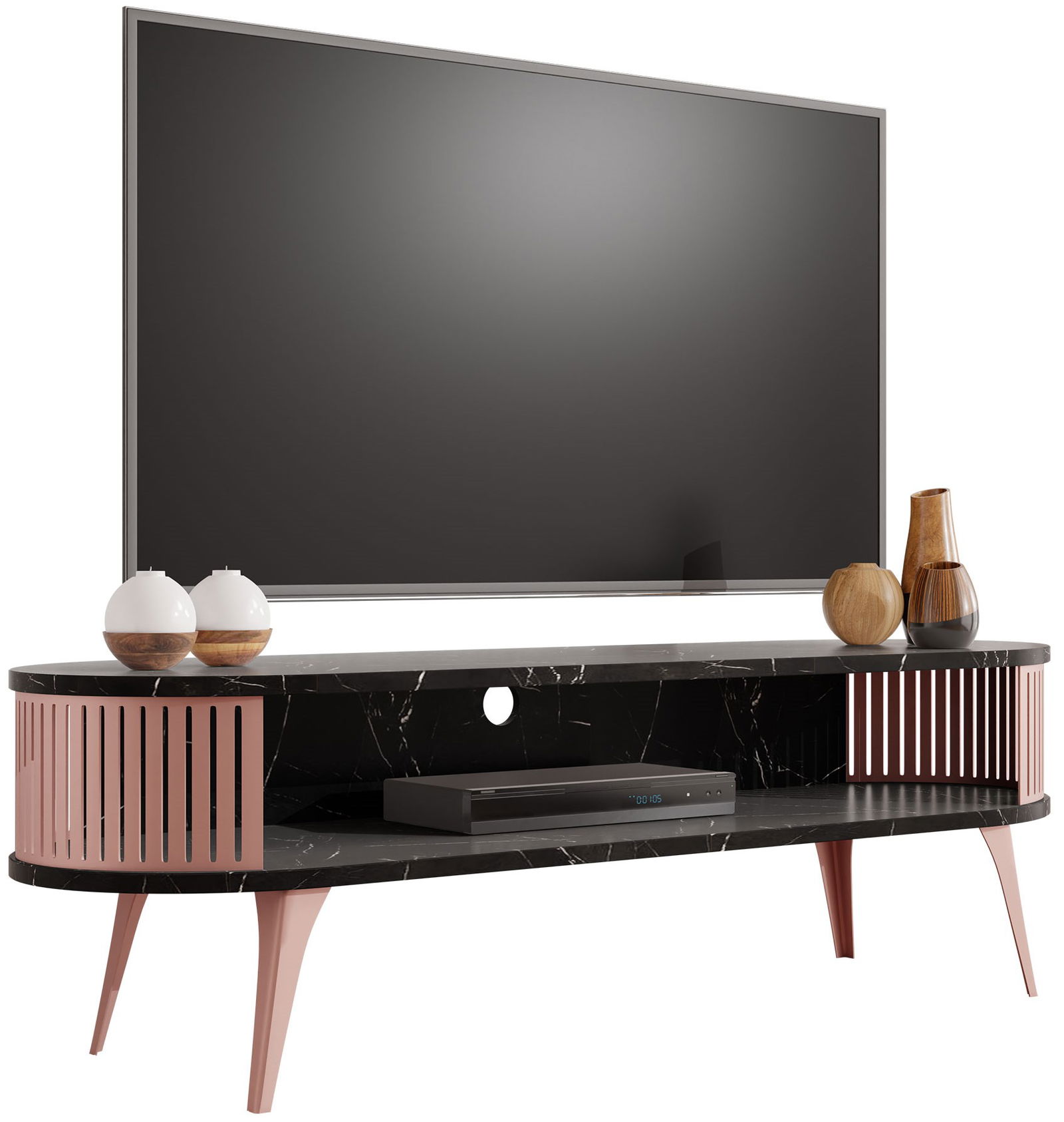 Το λαμπερό έπιπλο τηλεόρασης Roenni Ember είναι ένα statement κομμάτι για κάθε μοντέρνο σαλόνι. Η κομψή επιφάνεια έρχεται σε υπέροχη αντίθεση με τις ζεστές rose gold πινελιές, δημιουργώντας μια εκλεπτυσμένη και κομψή εμφάνιση. Ο μοναδικός σχεδιασμός με τα κάθετα πηχάκια προσθέτει μια πινελιά οπτικού ενδιαφέροντος.