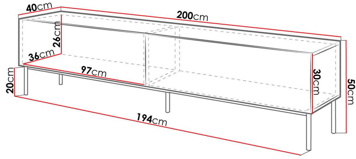Έπιπλο τηλεόρασης Slide-Leuko-Mauro-Μήκος: 200 εκ.