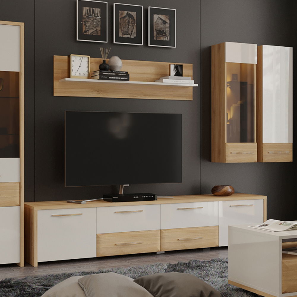 Αναβαθμίστε το σαλόνι σας με τη σύγχρονη γοητεία και την πρακτική λειτουργικότητα του κομψού επίπλου τηλεόρασης Soiree plus II. Οι καθαρές γραμμές του, τα φινιρίσματα σε αντίθεση και ο άφθονος αποθηκευτικός χώρος το καθιστούν το τέλειο επίκεντρο για το χώρο ψυχαγωγίας σας.
