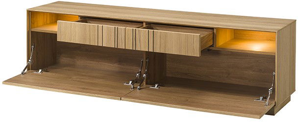 Αναβαθμίστε τον χώρο ψυχαγωγίας σας με το κομψό και λειτουργικό έπιπλο τηλεόρασης Unirso. Με όμορφο φινίρισμα που μοιάζει με φυσικό ξύλο, αυτό το έπιπλο συνδυάζει καθαρό, μοντέρνο σχεδιασμό με έξυπνες λύσεις αποθήκευσης για να οργανώσετε όλα τα μέσα και τις ηλεκτρονικές συσκευές σας.