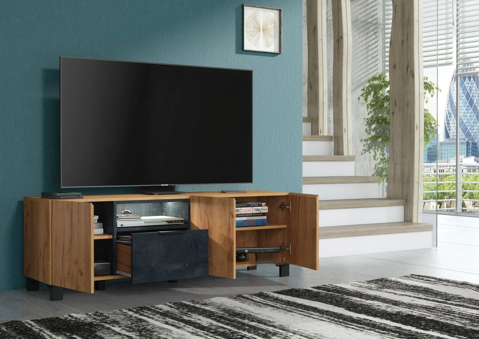 Αναβαθμίστε το σαλόνι σας με το κομψό και μοντέρνο έπιπλο τηλεόρασης Xena. Ο μινιμαλιστικός σχεδιασμός και οι καθαρές γραμμές δημιουργούν ένα κομψό και λειτουργικό κομμάτι για την αποθήκευση των συσκευών πολυμέσων σας δημιουργώντας μια φιλόξενη ατμόσφαιρα.