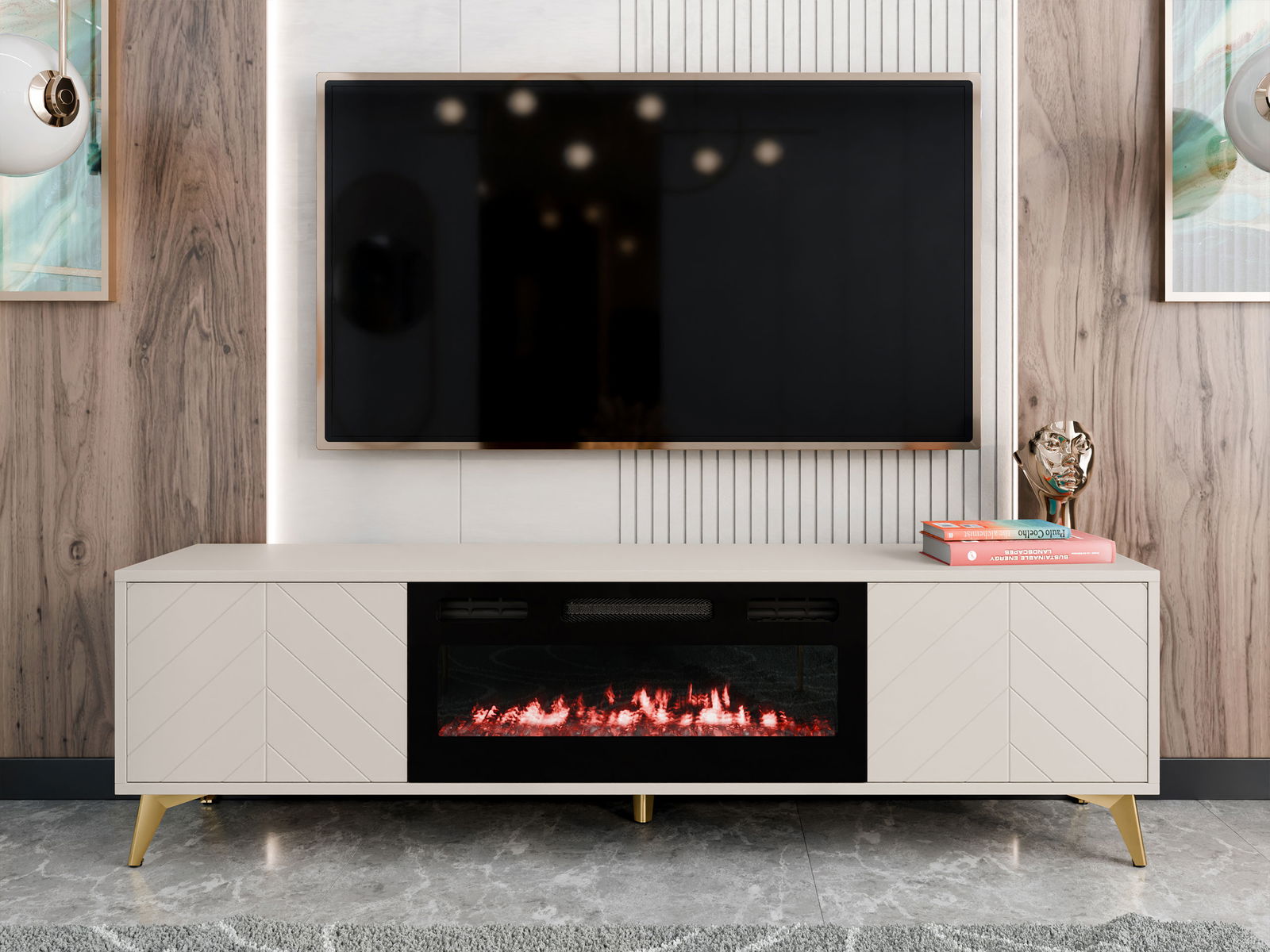 *Λόγω της θερμότητας που παράγεται από το τζάκι, δεν συνιστάται η τοποθέτηση της τηλεόρασης απευθείας στο ντουλάπι