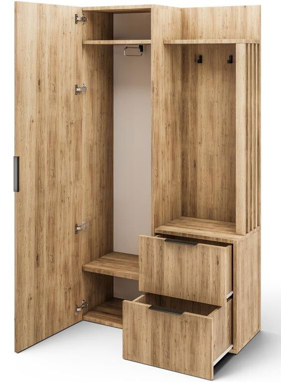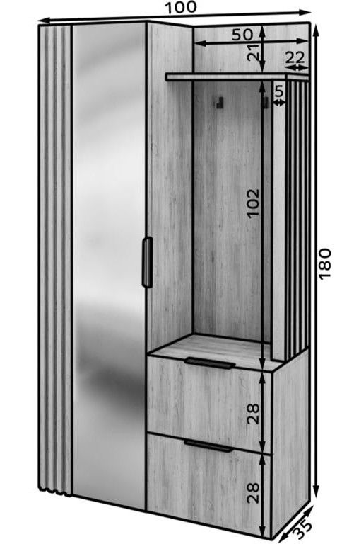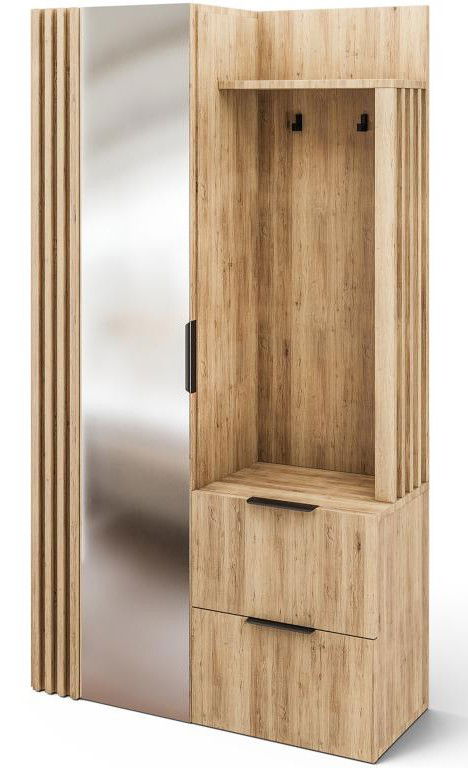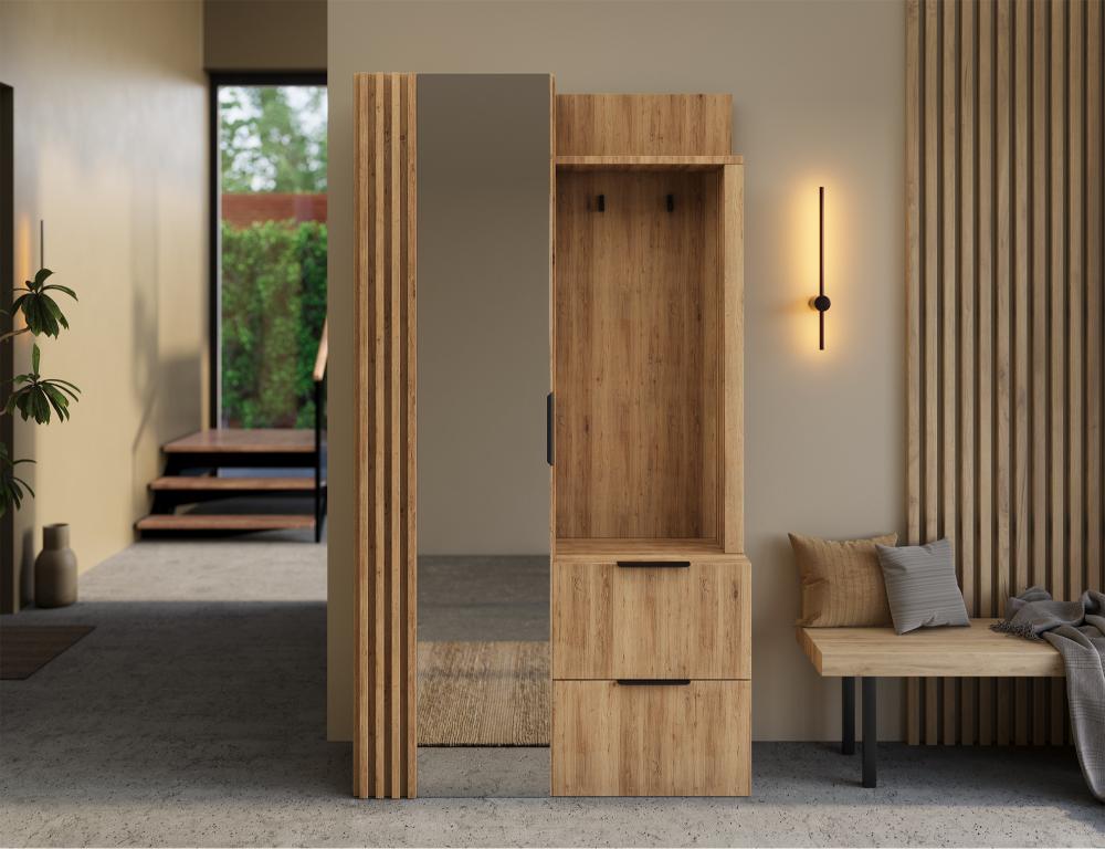 Ένα κομψό και λειτουργικό έπιπλο υποδοχής που συνδυάζει μοντέρνο design με πρακτικότητα. Διαθέτει ευρύχωρους αποθηκευτικούς χώρους για παπούτσια και αξεσουάρ, έναν μεγάλο καθρέφτη για γρήγορο έλεγχο πριν την έξοδο, καθώς και ανθεκτικούς γάντζους για την εύκολη τοποθέτηση παλτών και τσαντών.