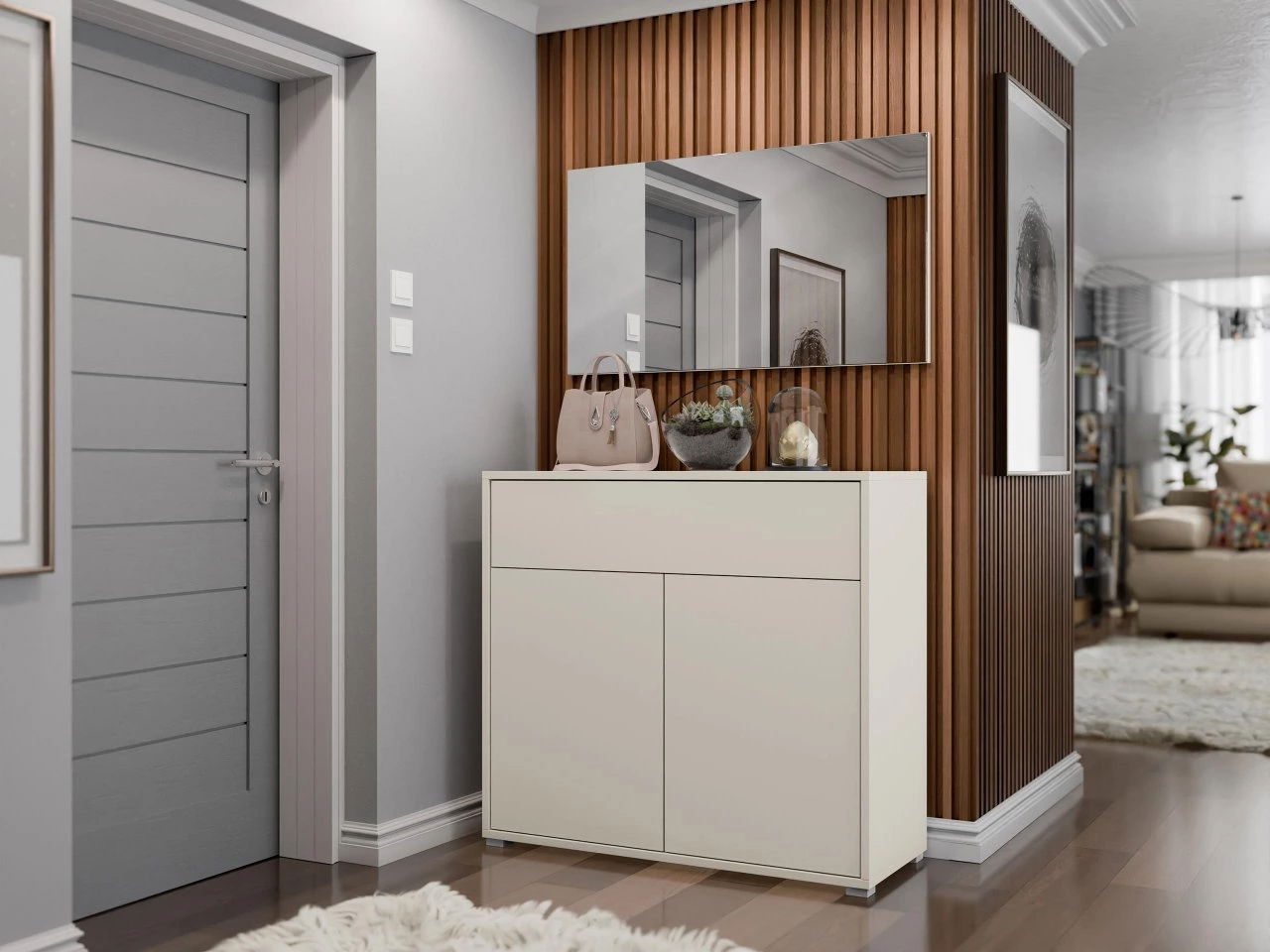 Το κομψό και λειτουργικό έπιπλο υποδοχής Gesita VI είναι η τέλεια προσθήκη σε κάθε σύγχρονο σπίτι. Ο κομψός σχεδιασμός και οι καθαρές γραμμές δημιουργούν μια σύγχρονη εμφάνιση, ενώ η ουδέτερη χρωματική παλέτα το καθιστά εύκολο να συνδυαστεί με διαφορετικά στυλ εσωτερικών χώρων. Το σετ περιλαμβάνει ένα ντουλάπι παπουτσιών με άφθονο αποθηκευτικό χώρο και έναν μεγάλο καθρέφτη για έναν τελευταίο έλεγχο πριν βγείτε έξω.