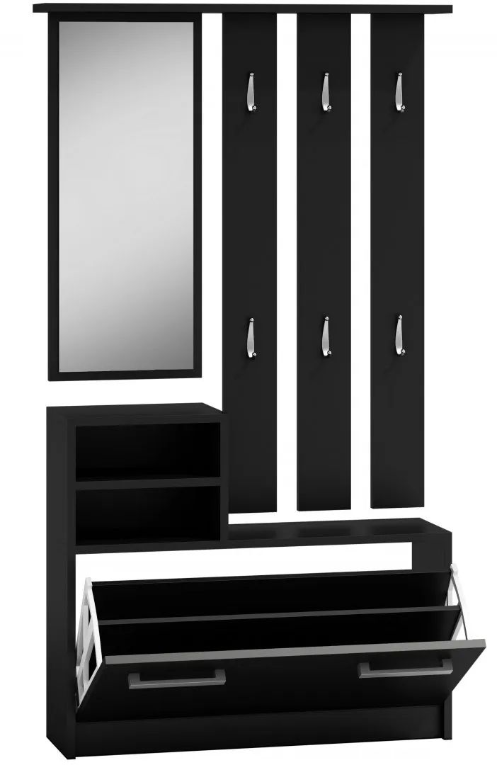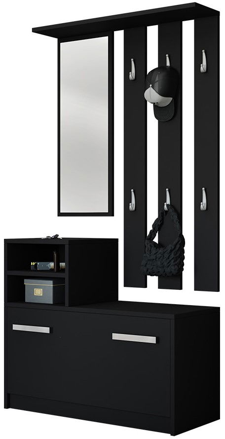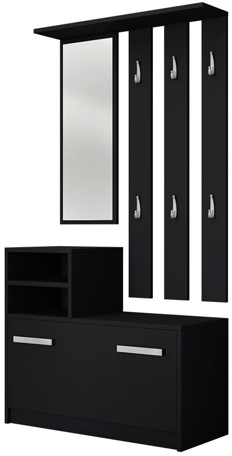 Το έπιπλο υποδοχής Kolom, μια πολυλειτουργική και έτοιμη λύση για το σπίτι σας. Αποτελείται από δύο μέρη χάρη στα οποία η προσαρμογή ύψους γίνεται ανάλογα τς προτιμήσεις σας. Ο μεγάλος καθρέπτης προσφέρει μια ολοκληρωμένη εικόνα, οι 6 κρεμάστρες αποτελούν εξαιρετική λύση για να κρεμάτε τα ρούχα καθώς και η παπουτσοθήκη διαθέτει χώρο για 8-9 ζευγάρια παπουτσιών.