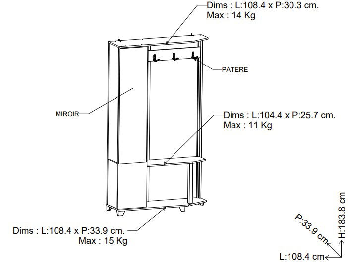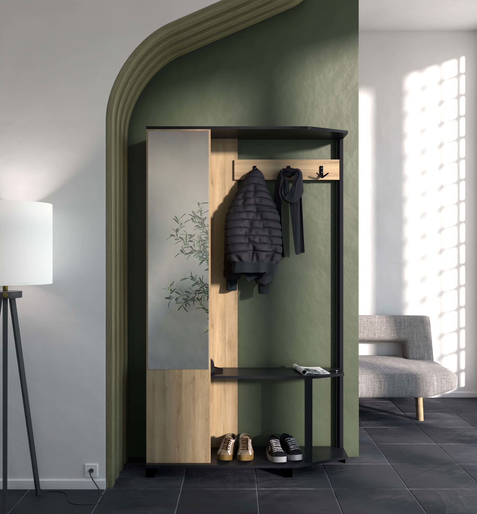Έπιπλο υποδοχής Soho, μίνιμαλ σχεδιασμού. Ο πρακτικός του σχεδιασμός, προσφέρει τη δυνατότητα αποθήκευσης, τοποθέτησης και κρεμάσματος υποδημάτων, ενδυμάτων αλλά και αντικειμένων.
