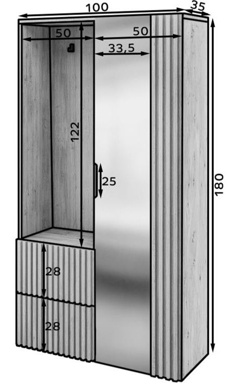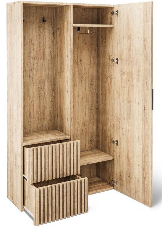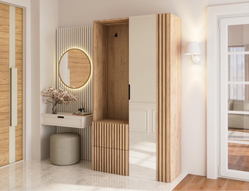 Ένα κομψό και λειτουργικό έπιπλο υποδοχής που συνδυάζει μοντέρνο design με πρακτικότητα. Διαθέτει ευρύχωρους αποθηκευτικούς χώρους για παπούτσια και αξεσουάρ, έναν μεγάλο καθρέφτη για γρήγορο έλεγχο πριν την έξοδο, καθώς και ανθεκτικούς γάντζους για την εύκολη τοποθέτηση παλτών και τσαντών.