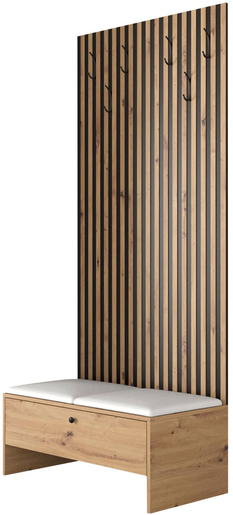 H Γκαρνταρόμπα Balma IV με σκαμπό, κρεμάστρα και πάνελ είναι σχεδιασμένη σε μοντέρνο και κομψό στυλ, για να δημιουργεί την κατάλληλη ατμόσφαιρα στο χώρο της υποδοχής του σπιτιού σας.