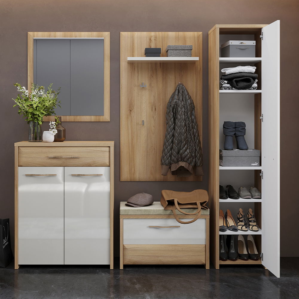 H γκαρνταρόμπα Giallo 1D θα εμπλουτίσει και θα ανανεώσει τον χώρο της υποδοχής του σπιτιού σας με νότες διχρωμίας φυσικού ξύλου και γυαλιστερού μπεζ, δημιουργώντας μια μοναδική ατμόσφαιρα στον χώρο. Ιδανική επιλογή χάρη στις πρακτικές διαστάσεις και τον ευρύχωρο αποθηκευτικό χώρο.
