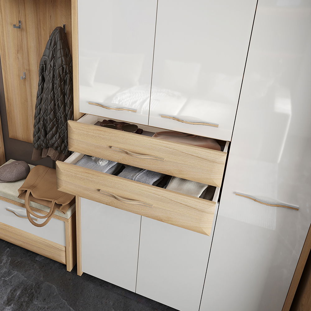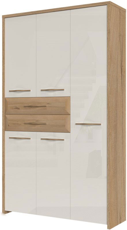 H γκαρνταρόμπα Giallo 5D2S θα εμπλουτίσει και θα ανανεώσει τον χώρο της υποδοχής του σπιτιού σας με νότες διχρωμίας φυσικού ξύλου και γυαλιστερού μπεζ, δημιουργώντας μια μοναδική ατμόσφαιρα στον χώρο. Ιδανική επιλογή χάρη στις πρακτικές διαστάσεις και τον ευρύχωρο αποθηκευτικό χώρο.