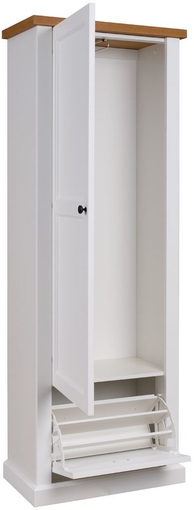 Η γκαρτναρόμπα Sveri είναι μία επιλογή που θα ανανεώσει οπτικά και πρακτικά τον χώρο υποδοχής του σπιτιού σας. Ο country σχεδιασμός της σε συνδιασμό με τους πολλαπλούς χώρους αποθήκευσης το καθιστούν ένα ιδανικό προϊόν για εσάς. Αποτελείται από 1 ευρύχωρο συρτάρι για την αποθήκευση των υποδημάτων σας και 1 ντουλάπι που διαθέτει ράγα για κρέμασμα και ανοικτό ράφι για την αποθήκευση ενδυμάτων και λοιπών αντικειμένων. Συνδιάστε την με τα υπόλοιπα προϊόντα της σειράς Sveri και δημιουργήστε ένα υπέροχο χώρο υποδοχής για εσάς και τους καλεσμένους σας.