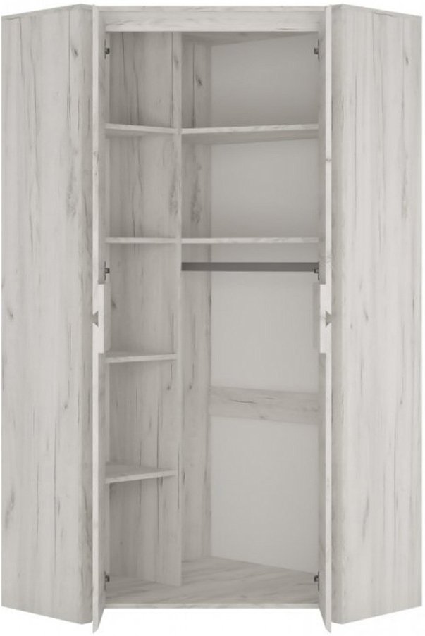Μια γωνιακή ντουλάπα σας επιτρέπει να αξιοποιήσετε στο μέγιστο το διαθέσιμο χώρο στο υπνοδωμάτιο, δημιουργώντας μια ιδιαίτερα ευρύχωρη γωνία αποθήκευσης! Το ουδέτερο λευκό χρώμα ξύλου της επιτρέπει να συνδυάζεται με όλα τα χρώματα διακόσμησης, κάνοντας την κατάλληλη και για τα 2 φύλα.