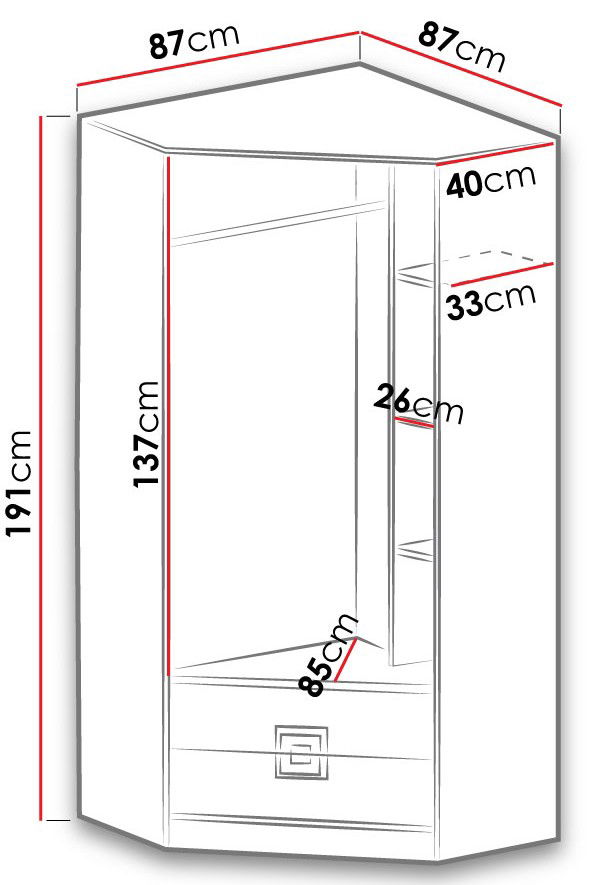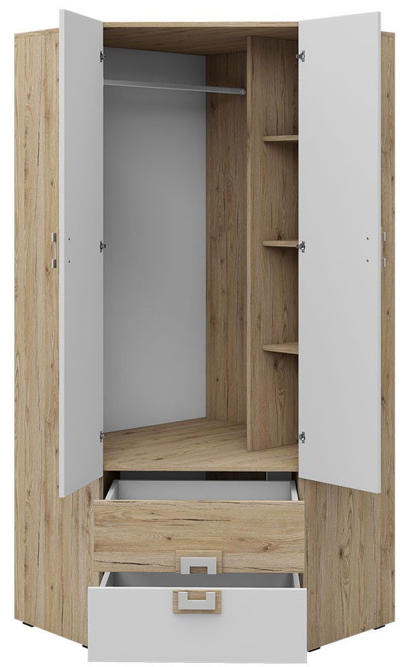 H γωνιακή ντουλάπα Nico σας παρέχει τη δυνατότητα να εκμεταλλευτείτε στο έπακρο το διαθέσιμο χώρο στο υπνοδωμάτιο, δημιουργώντας μια ιδιαίτερα ευρύχωρη γωνία αποθήκευσης! Κατάλληλη και για παιδικό δωμάτιο.