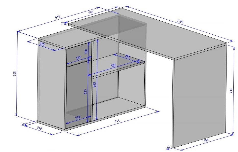 Γωνιακό γραφείο Gaucho, μια ιδανική, μινιμαλιστικού ύφους, επιλογή για εσάς. Οι πρακτικές του διαστάσεις το καθιστούν κατάλληλο για όλους τους χώρους. Βασικό πλεονέκτημα του προϊόντος είναι σαφώς οι πολλαπλοί αποθηκευτικοί χώροι καθώς διαθέτει 1 ντουλάπι, 1 μεγάλο ανοιχτό ράφια και 1 συρτάρι. Επιλέξτε ανάμεσα στις διαθέσιμες αποχρώσεις και αποκτήστε το άμεσα.