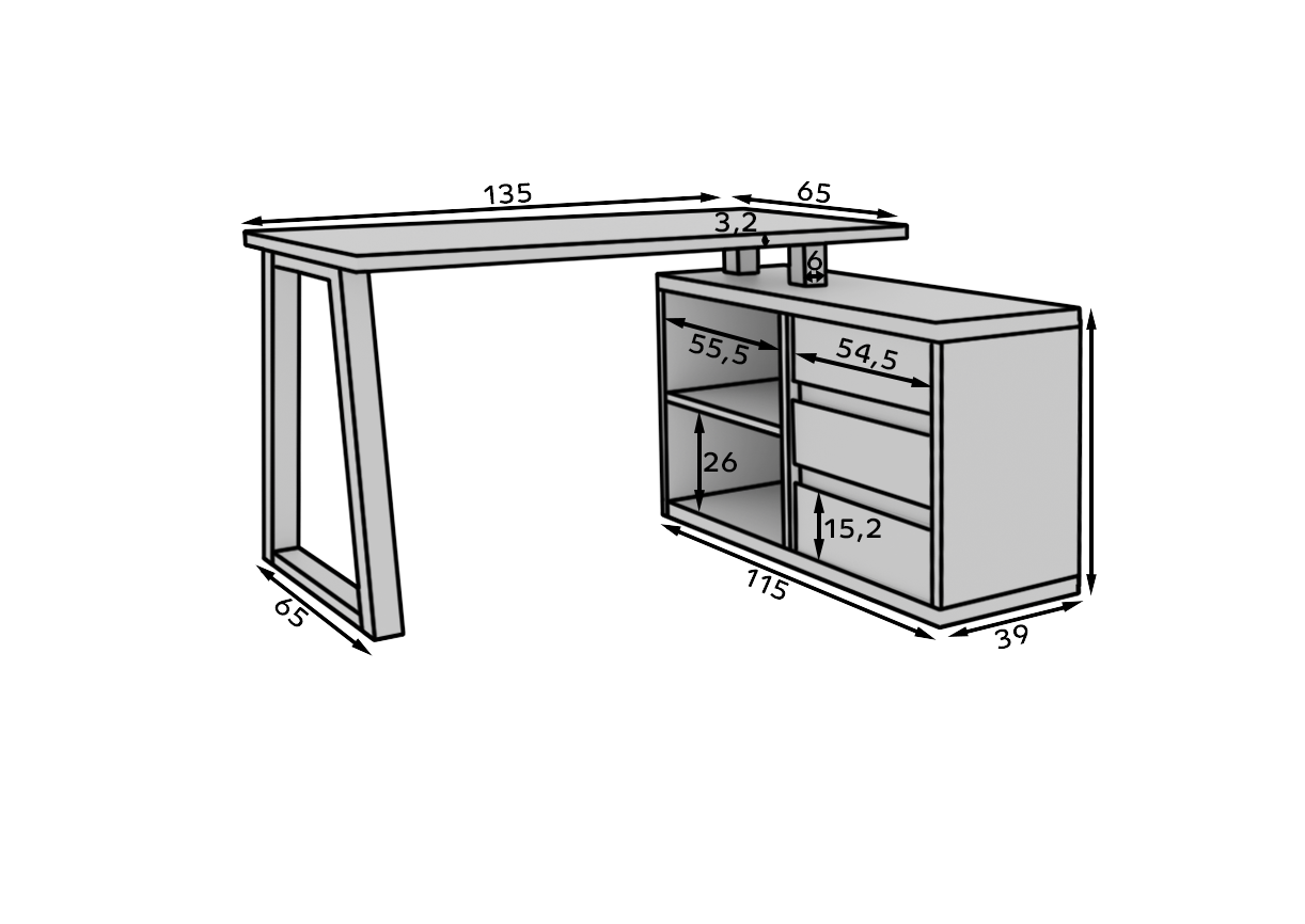 Ανανεώστε τον χώρο σας με το μοντέρνο γωνιακό γραφείο Omar II. Πρόκειται για ένα γραφείο ιδιαίτερου σχεδίου και πρακτικών διαστάσεων. Διαθέτει μεγάλη επιφάνεια, κατάλληλη για εγκατάσταση υπολογιστή, 3 συρτάρια και 1 ευρύχωρο ράφι.