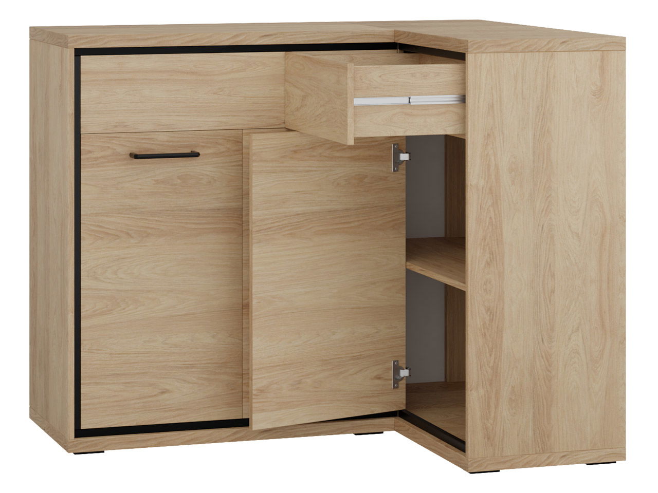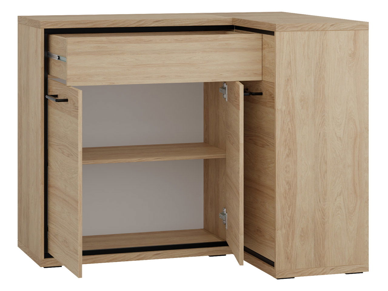 Ο γωνιακός μπουφές Mediolan 15K χαρακτηρίζεται για τον μοντέρνο της σχεδιασμό και την εργονομία. Ιδανική επιλογή για την κουζίνα ή την τραπεζαρία του σπιτιού σας. Συνδυάστε το ιδανικά με τα υπόλοιπα έπιπλα της σειράς Mediolan