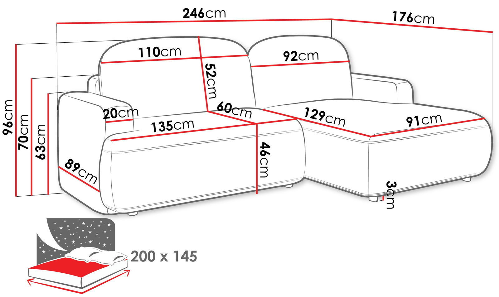 Γωνιακός καναπές Alivar-Leuko-Δεξιά