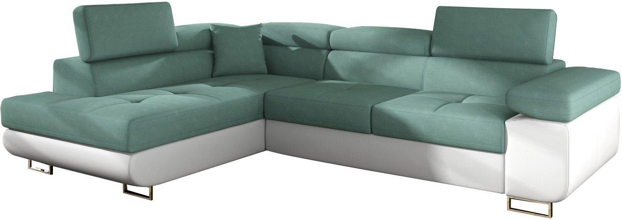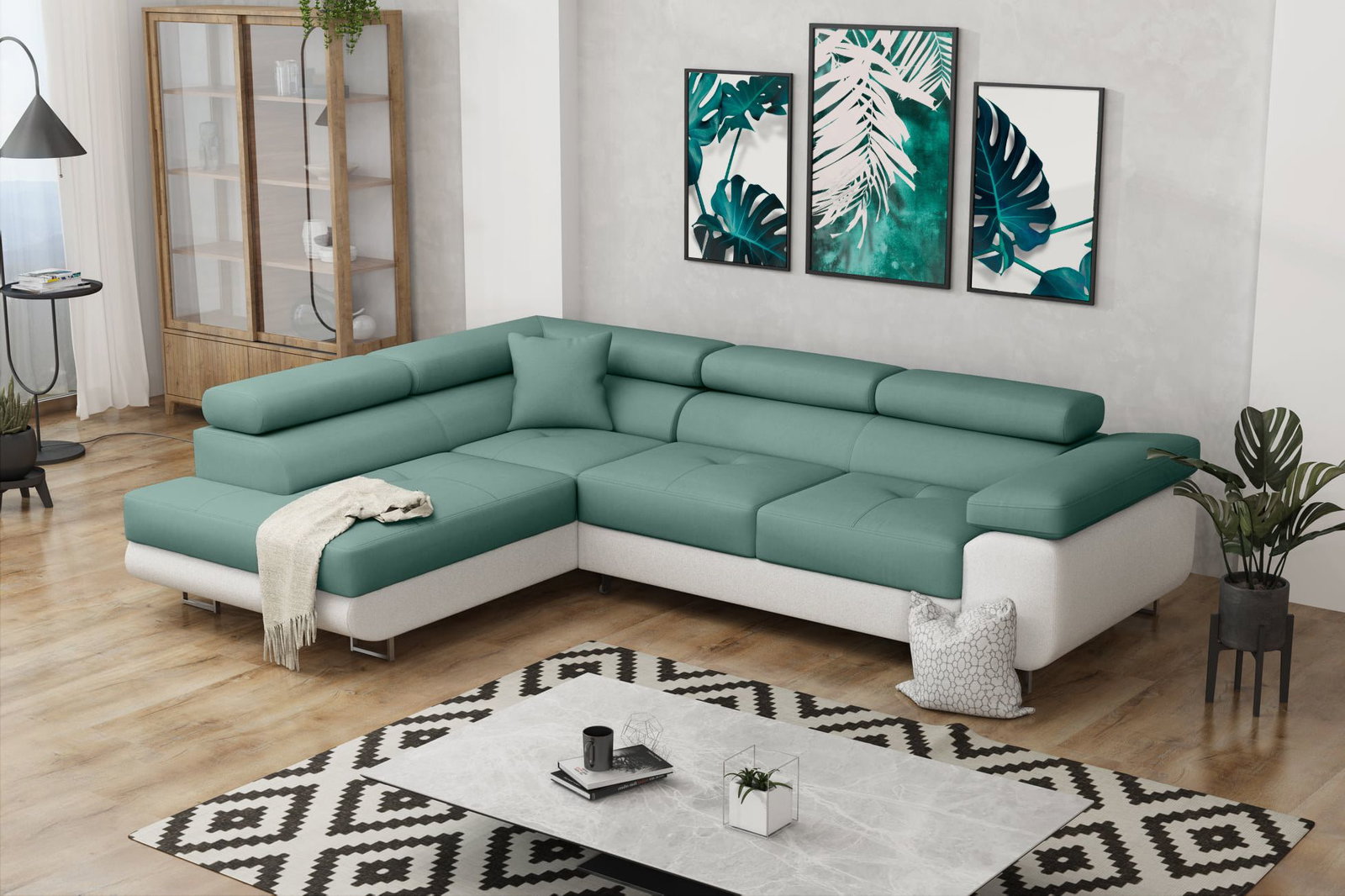 Γωνιακός καναπές Antony-Αριστερή-Λευκό – Πετρόλ