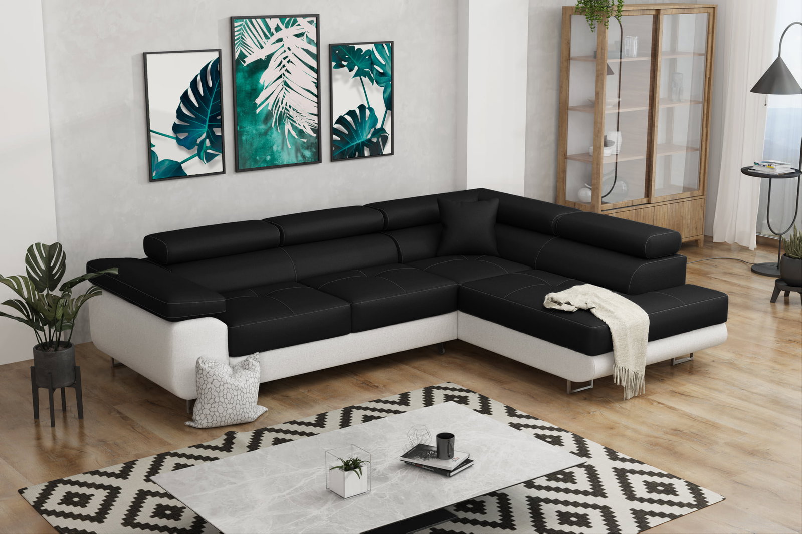 Γωνιακός καναπές Antony-Δεξιά-Λευκό – Μαύρο