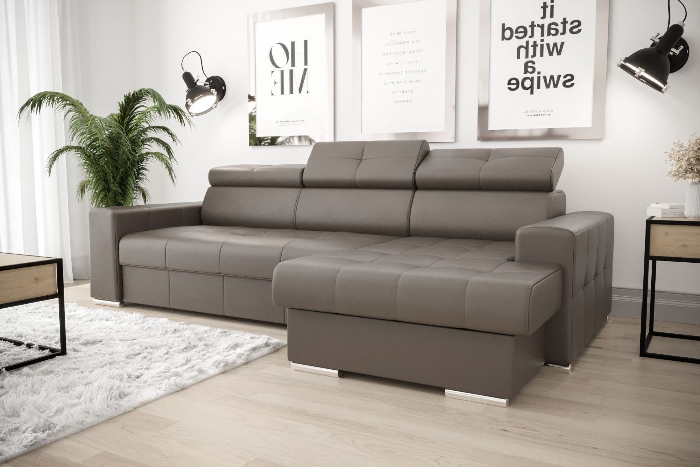 Γωνιακός καναπές April mini Eco LTHR-Kafe-Δεξιά